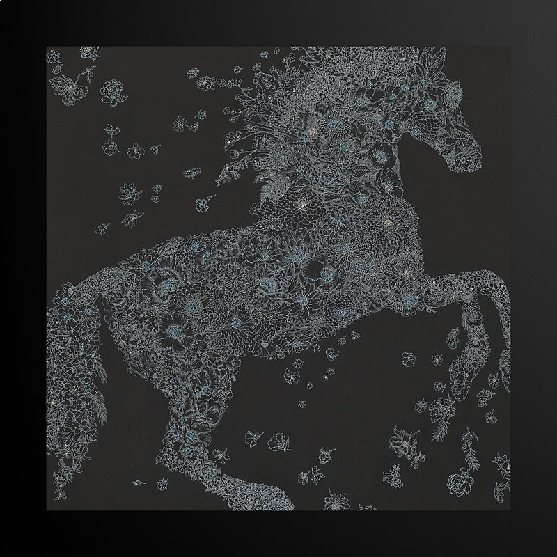 Entonces, el reloj Hermès Arceau Robe Légère es el puente entre estos dos pilares de la casa, unidos a través de un discurso de la más grande y experta artesanía. ¿Por qué es esto? Pues este nuevo reloj toma inspiración del carré Robe Légère, diseñado por el artista francés Théo de Gueltzl. El motif, blanco sobre azul, muestra un caballo encabritado con una melena floral.