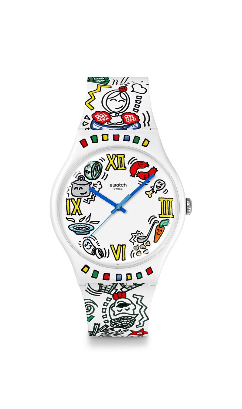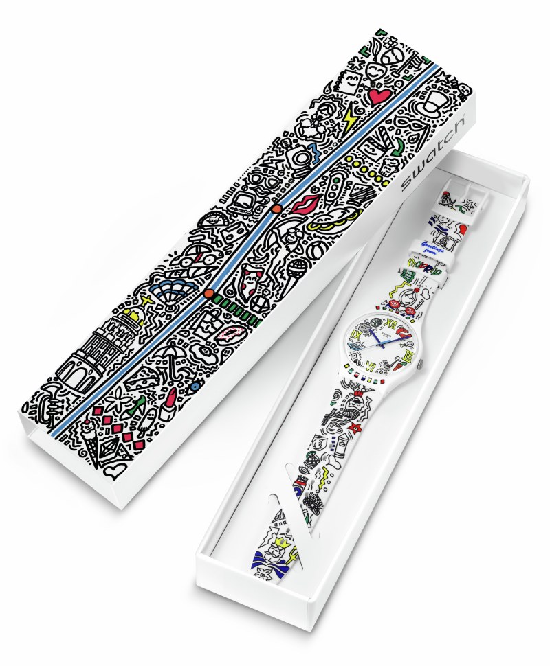 Ahora, este lado artístico de Swatch pone el ojo sobre las calles y el costumbrismo madrileño. Sí: vamos a tener un reloj inspirado en Madrid. Para ello, la firma ha unido fuerzas con Gondho para crear el diseño. Y si no lo conocéis, Gondho ha vivido y se ha formado a lo largo y ancho del mundo; y en estos viajes se enamoró del arte de Kith Haring… por si sus diseños os parecían familiares.