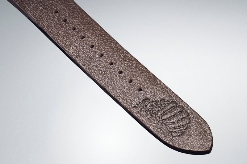 En la esfera, nos encontramos con un dial azul esmaltado que toma el color del traje de nuestra heroína, y su insignia reposa sobre la sexta posición. Los indicadores se han presentado en blanco para contrastar con el look y todo se acentúa con una aguja de segundero dorada. En el reverso de la caja nos encontramos con un diseño open-back con una placa dorada sobre la cual se graba una cita de la peli. Todo esto cierra con una correa de piel granulada en marrón de aspecto clásico, que se decora también con un motif del Gigante Ohms.
