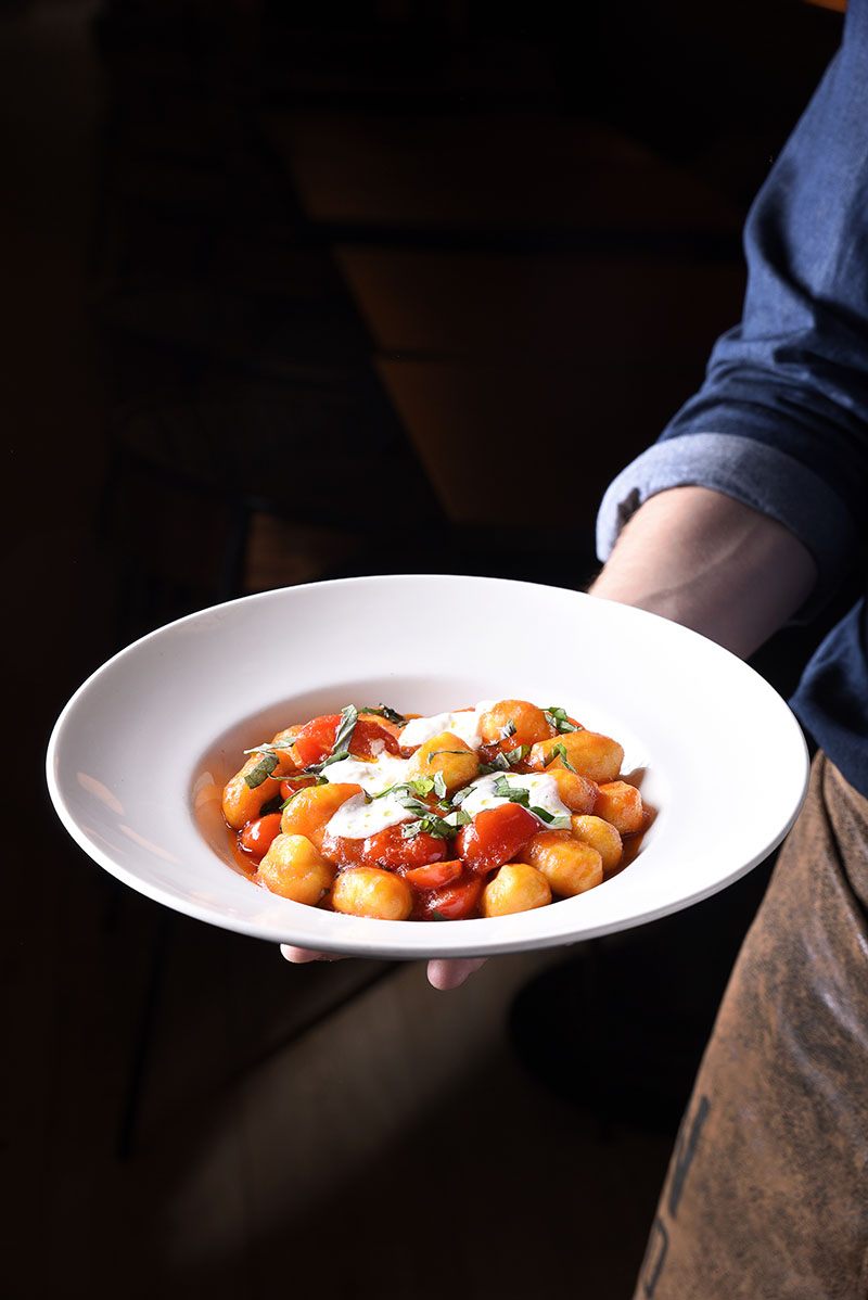 Imágenes superiores: 1) Interior del nuevo restaurante; 2) Gnocchi artesanal con tomate confitado y burrata