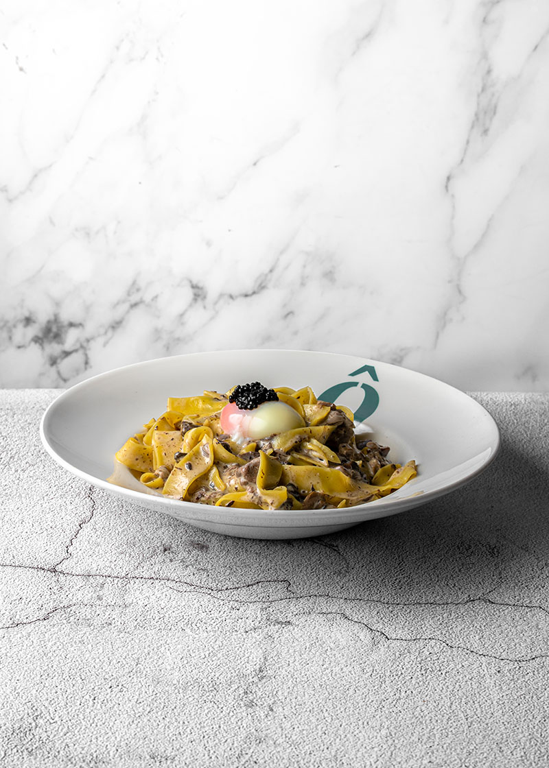 Papardelle de trufa y setas con huevo poché