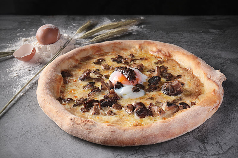 Para los que se inclinan por la pizza, una llamativa opción es la Trufa, guanciale y huevo poché, con base de boletus, y la Pizza L’Originale, que combina guanciale crujiente, tomate amarillo, cebolla al vino y burrata, coronada con un toque de pistacho.