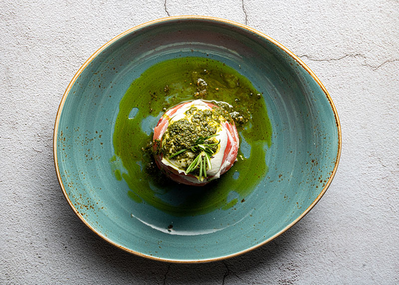 La Fonduta de quesos en hogaza de pan payés, servida con chips vegetales, nos parece ideal para compartir. En cuanto a la sección de burratas y mozzarellas, nos llama la atención la Mozarella caprese, una combinación de milhojas de tomate y aceite de pesto genovese.