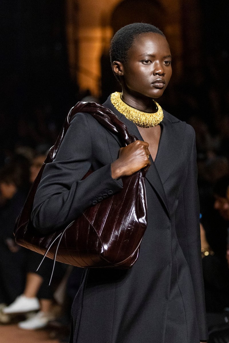 A las novedades de tamaño se suma que la estética elegante de los nuevos bolsos Fendi Spy se complementa con materiales lujosos y una paleta de colores sofisticada. Los tonos van desde neutros hasta matices sorbete. Así, las versiones en cuero liso se presentan en marrón chocolate, miel oscuro y negro, acentuadas por un rosa macaron empolvado, verde menta o amarillo sorbete, que realzan el nuevo diseño. Este cambio permite que estos nuevos bolsos se posicionen por encima del clásico, y que la Gen Z, que ya lo tenía como favorito, adopte el modelo Spy como un must de su generación. Como continuación de su tradición en cuero y piel, la Maison incluye diseños exclusivos con incrustaciones de visón en un patrón de chevron que completan la nueva colección. Sin olvidar el estilo de piel astracán bordado en color leche, un must en las nuevas siluetas.