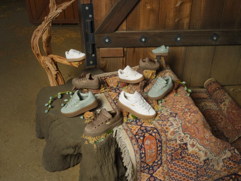 El primer modelo, lanzado en 2015, tomaba inspiración de las míticas Puma Suede de toda la vida. Pero tenía que haber un twist, y lo hubo: las suelas de la versión de Rihanna se sustituyeron por una plataforma inspirada en los zapatos creeper y en su momento fueron algunas de las zapatillas más buscadas del mundo. De vez en cuando, aún vemos por la calle alguno de estos primeros colorways… especialmente el pack de terciopelo con lazos ahora que la tendencia coquette está en alza.