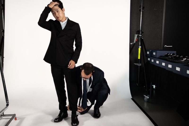 Pero, al igual que todo lo que hace Dior para los mortales, la magia está en los detalles. Las solapas anchas se decoran con un alfiler decorativo con las iniciales de Christian Dior en metal. Como símbolos de refinamiento, un pañuelo de cachemira, una corbata de seda negra y un cinturón reversible rematan cada look.