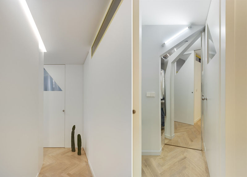 La dueña de la vivienda buscaba dos zonas bien diferenciadas: una abierta, más pública y otra más íntima, compartimentada y privada. De esta manera Número 26 distribuye el espacio para configurar la zona abierta con un amplio salón, cocina y vestíbulo, en la zona privada nada menos que 3 dormitorios, un aseo y un baño completo.