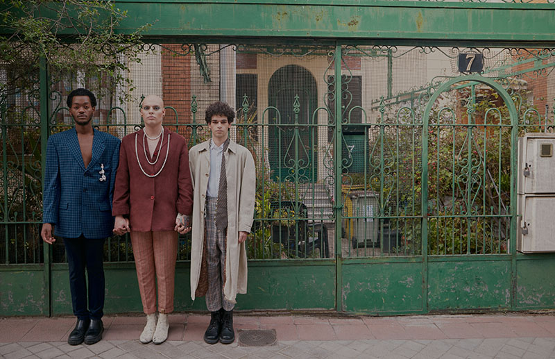 Foto Arriba: Megane (izquierda) lleva sombrero By Loleiro + Americana vintage + Collar de Swarovski. Flavio (centro) lleva traje de ASOS + Collar de Swarovski. Claudio (derecha) lleva traje de Nestor Rodriguez + Camisa de Salsa + Collar de Perlas vintage.