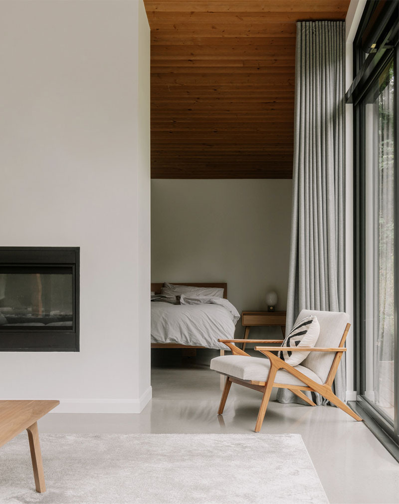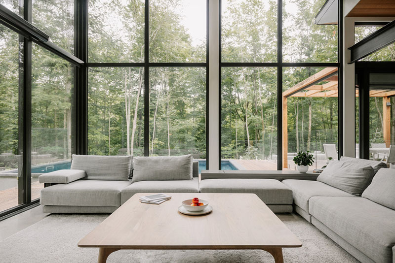 Es más, estos espacios interiores creados por el estudio Matière Première Architecture se fusionan de forma fluida con el entorno exterior, disolviendo la frontera entre arquitectura y naturaleza.