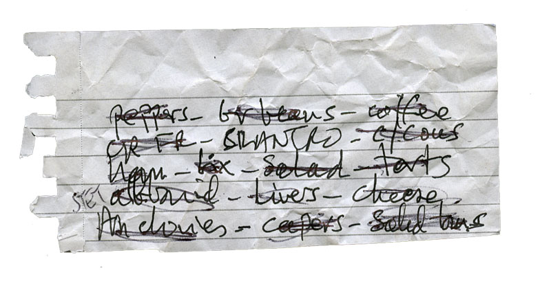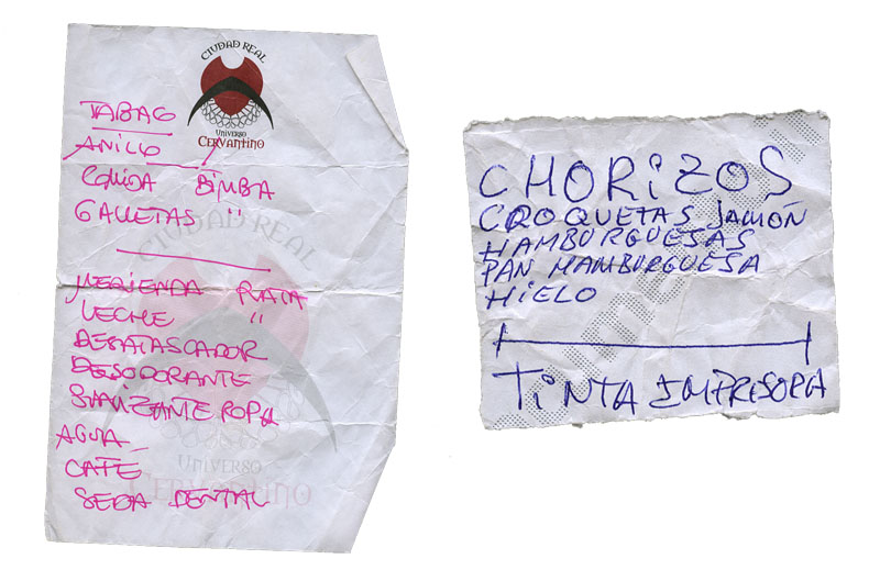 “Hace algo más de un año me encontré en un supermercado, tirada en el suelo, una lista de la compra. Me hizo gracia y la guardé. Me olvidé de ella. Meses después, vaciando mi cartera, la nota cayó al suelo. Estaba doblada en cuatro pliegos. La serendipia. Tras leerla de nuevo se me ocurrió tratar de encontrar más” Así cuenta Jara van Herpt cómo comenzó a coleccionar listas de compra encontradas.