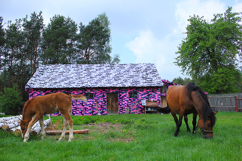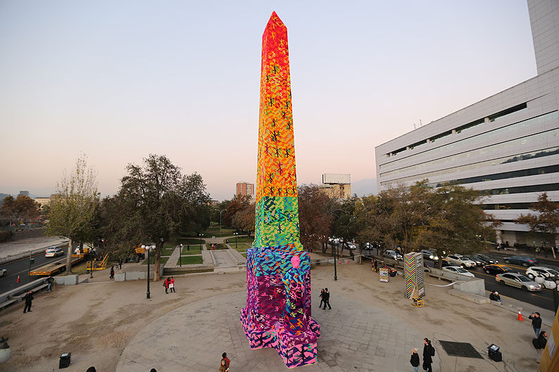 Estx artistx polacx transforma espacios y objetos públicos mediante el uso de hilos brillantes de muchos colores, creando instalaciones cubiertas de crochet de todos las tamaños y formas, que consiguen captar la atención inmediata del público. Excediendo los límites de la moda, la artesanía y el arte público, la obra de Olek relaciona de forma natural lo escultórico con la fantasía.