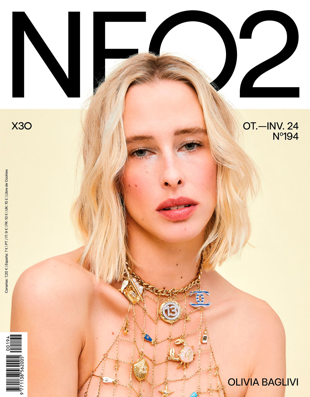 En portada: CHANEL Beauty: (ojos) Paleta exclusiva enchanted night + Máscara de pesta.as noir allure noir + (labios) Rouge allure l’extrait orange polaire + (tez) Ultra le teint B10 + crema y serum N.1 + (pómulo) Joues contraste intense rouge franc / CHANEL Moda: Collar fantasía de metal y strass