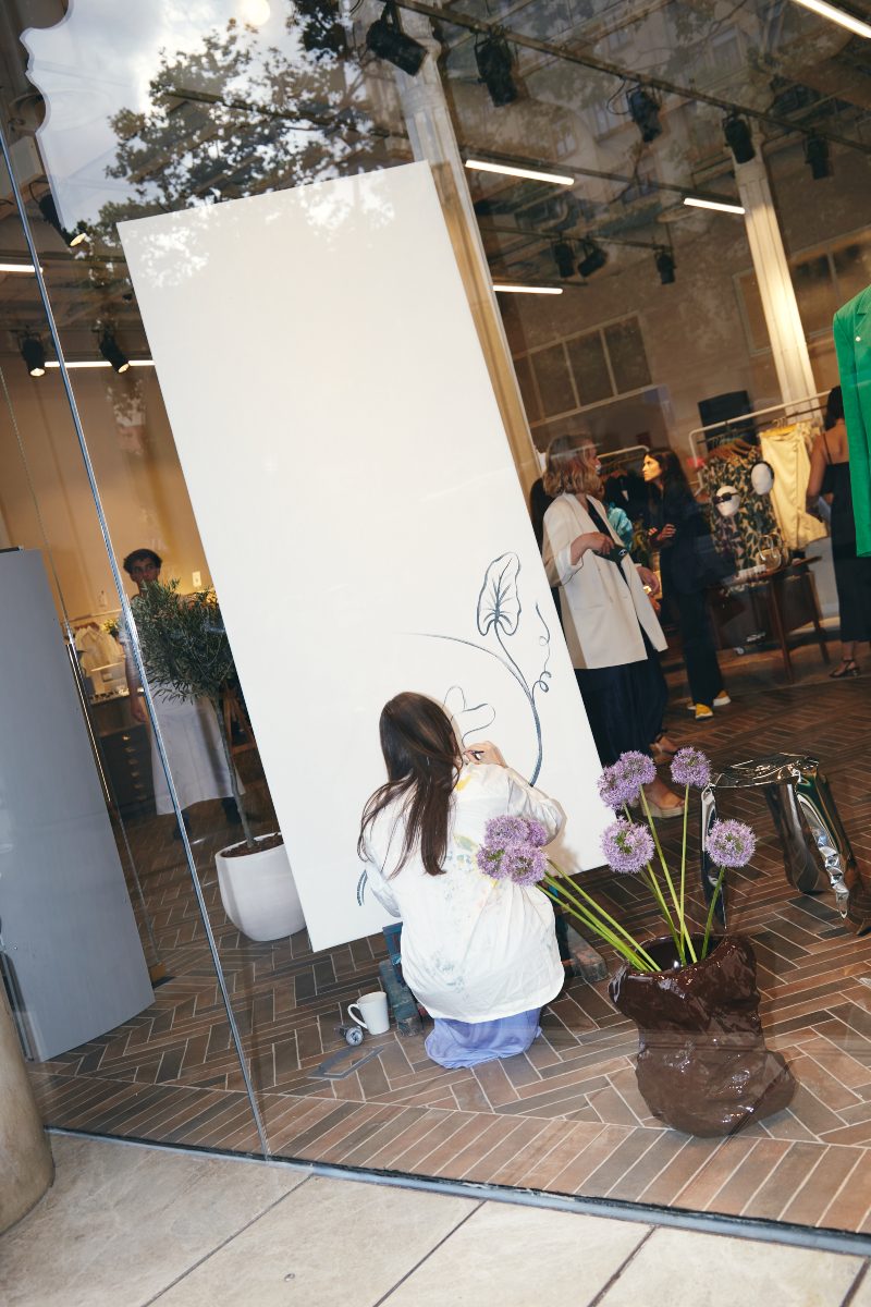La artista Mercedes Bellido pintando en directo en la tienda de & Other Stories. @andotherstories
