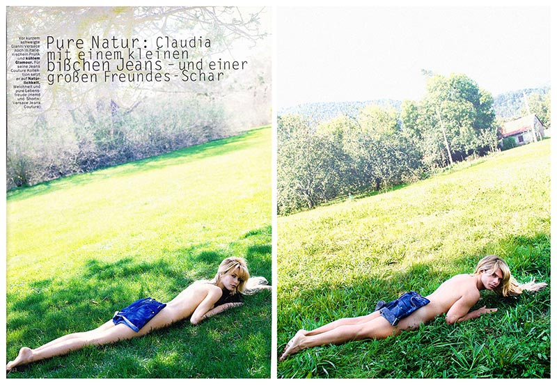 Claudia Schiffer es un lienzo en blanco en el que pintar. Los modelos muchas veces son un boceto sobre el que el artista crea. En el caso de Claudia su carisma hace que ese lienzo muchas veces esté ya casi pintado. Para mí en Copying Claudia ella es como un hada que trato de cazar. Y en esa aventura que supone meterme en sus imágenes para jugar a ser ella acabo cazado yo mismo. En lo personal, hay muchas personas a quienes un olor o un sonido les trae un recuerdo. Es lo que me pasa con Claudia. Ella trae a mi cabeza ilusiones de infancia.