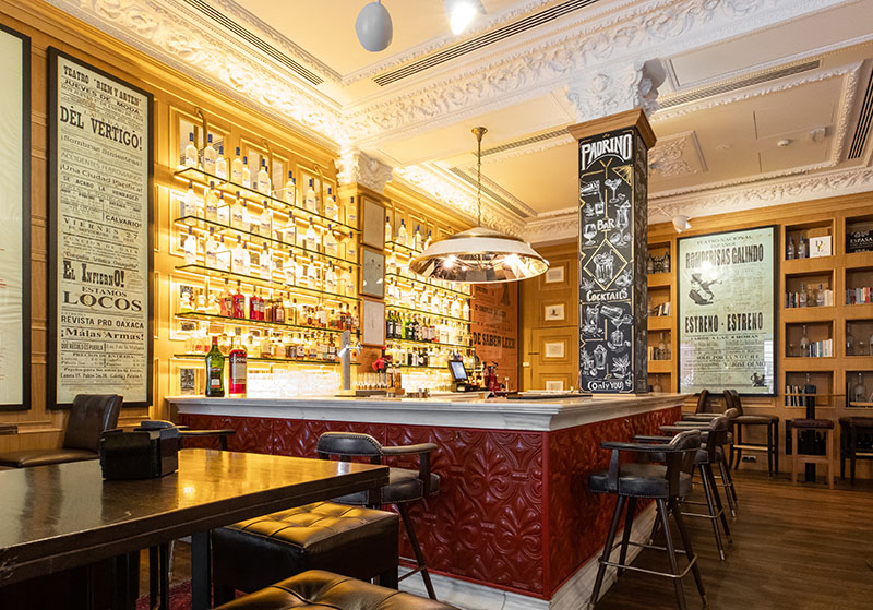 Padrino Cocktail Bar se ha inaugurado a principios de este año y se encuentra detrás de una fachada icónica del siglo XIX de Madrid. El local perteneció a la librería homónima ahora convertida en coctelería.