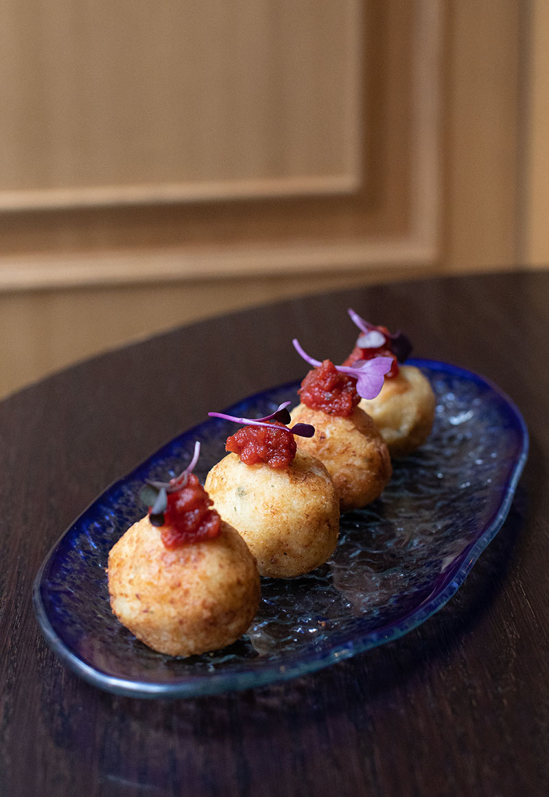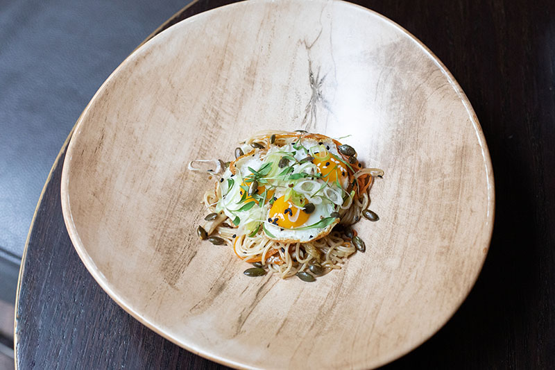 En su carta de picoteo encontramos platos de otros continentes como el Poke Bowls de salmón (13,50€), vegetal o pollo (12,50€) o unos Xiao Long bao tradicional, paleta de cerdo ibérico y verduras, teriyaki ahumado (12,50€ / 4 unidades). O platos fusionados como su Mollete de Pastrami (15,50€) o recetas tradicionales como son Nuestro Callos (16€); por poner solo algunos ejemplos de su carta de comida.
