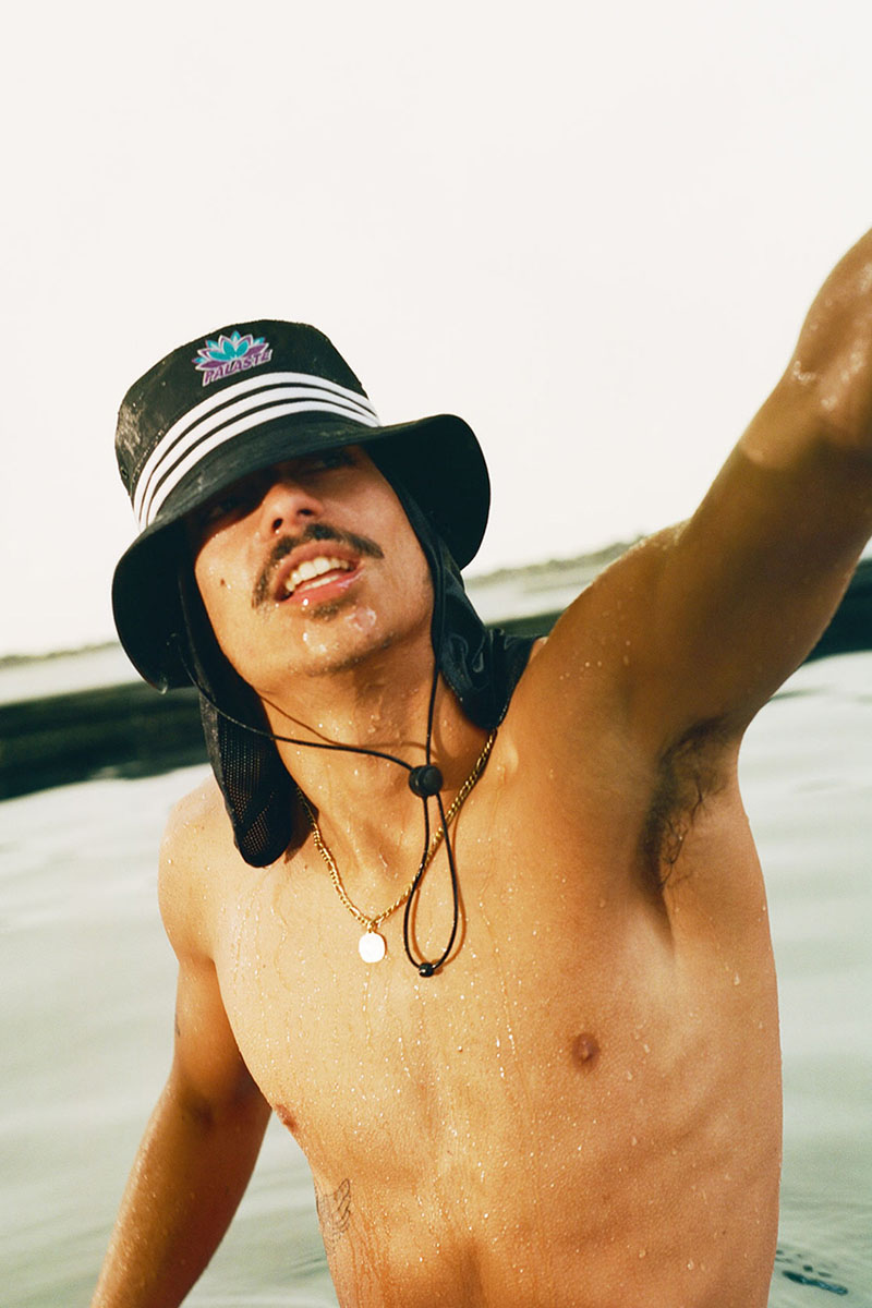 En Palaste de Palace x adidas Originals se incluyen desde un par de chanclas para la piscina hasta chalecos, sudaderas, shorts de felpa y buckets. Incluso presentan un albornoz y una esterilla en los que se estampa el nombre de la colección con el símbolo de la flor de loto en color morado para completar el kit de yogui perfecto.