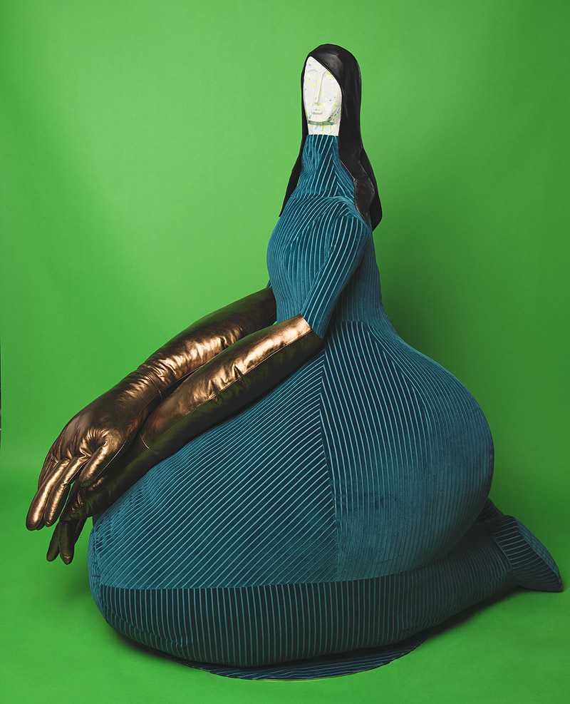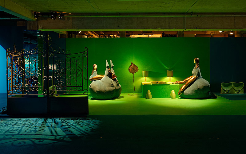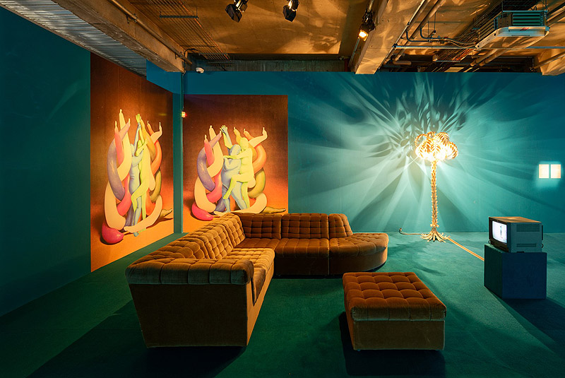 Con inspiración de los años 70, la escenografía de “Doppelganger!” responde a códigos del arte, el diseño y la literatura, así como a fenómenos socioculturales con tendencia al humor y a lo grotesco. Sus referencias van desde Mary Shelley y Ada Lovelace hasta Barbapapa; desde las muñecas de Hans Bellmer a Luigi Colani; desde Hector Guimard hasta la ceberestética. Todo ello se combina para crear obras y seres proteicos, cuyo transformismo traspasa los límites del buen gusto y las representaciones de identidad. En la muestra, los artistas entran en diálogo entre sí apoyándose en el prefijo “trans”, propiciando un intercambio lúdico entre la creación contemporánea y la historia del arte y el diseño.