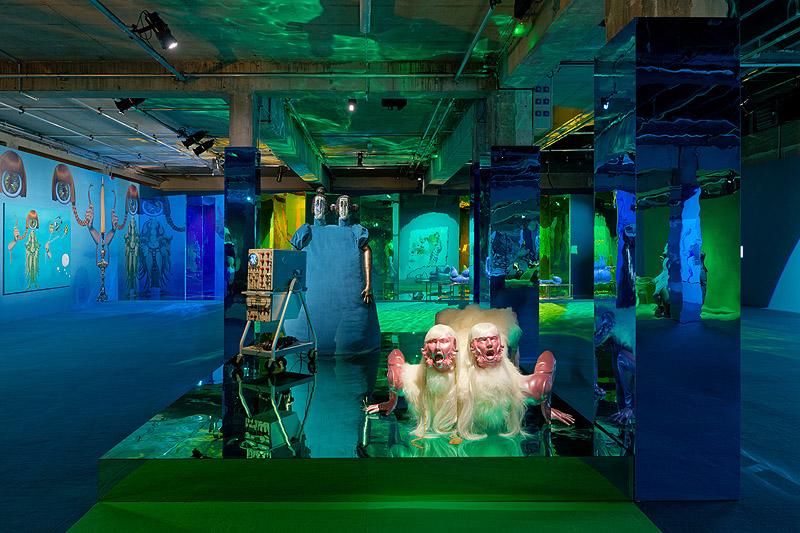 Nuestra exposición Doppelganger! tiene lugar en un espacio de arquitectura brutalista, en el sótano del Palacio de Tokio. Su hormigón tosco, sus rincones oscuros, la tracería inextricable y los arriostramientos de sus paredes y techos, así como sus numerosas columnas, sirven de telón de fondo para la puesta en escena de nuestras obras.”