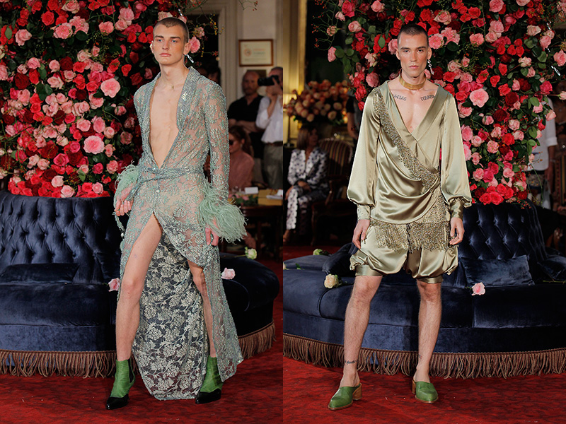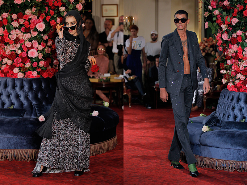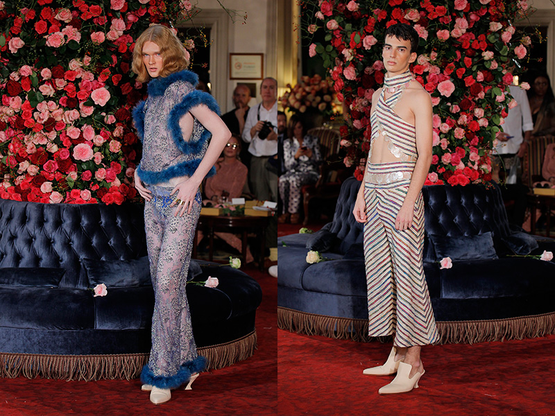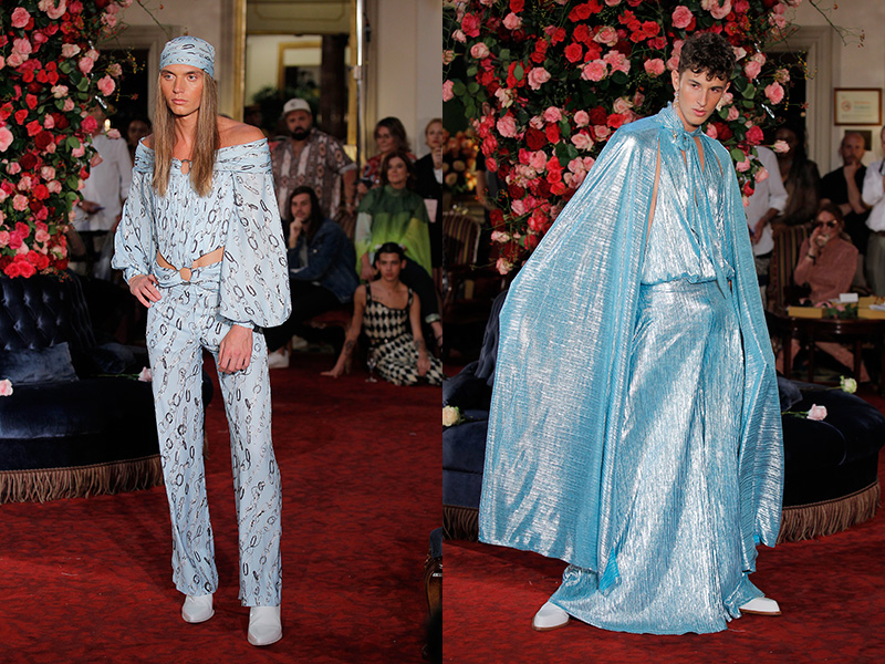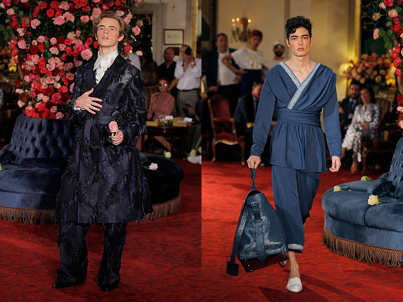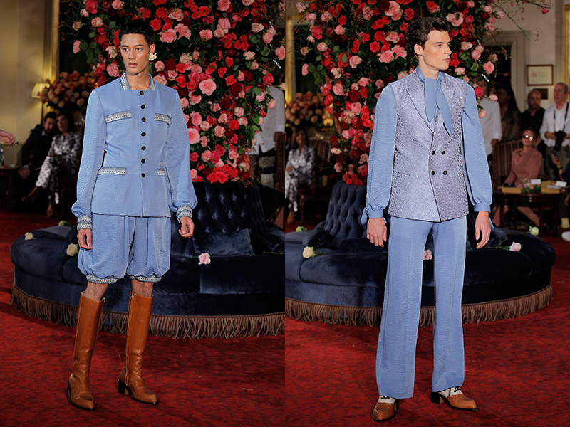 Asimismo, ha desarrollado una selección de calzado que acompaña a la perfección a cada uno de los estilos que presenta con sus personajes. Una vistosa colección de zapatos que recuerdan a aquellos utilizados por los cortesanos de los palacios europeos de los siglos XVII y XVIII, fruto de la colaboración con Arpent Studio.