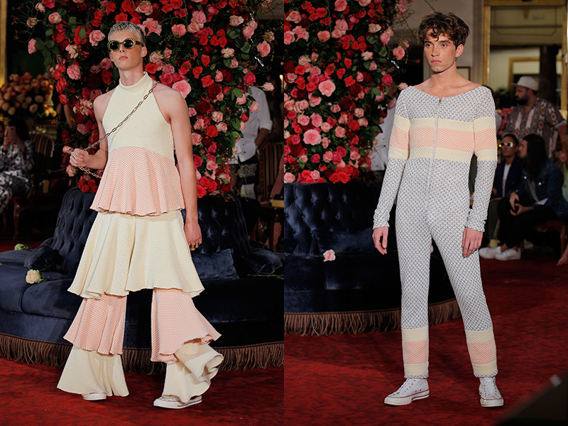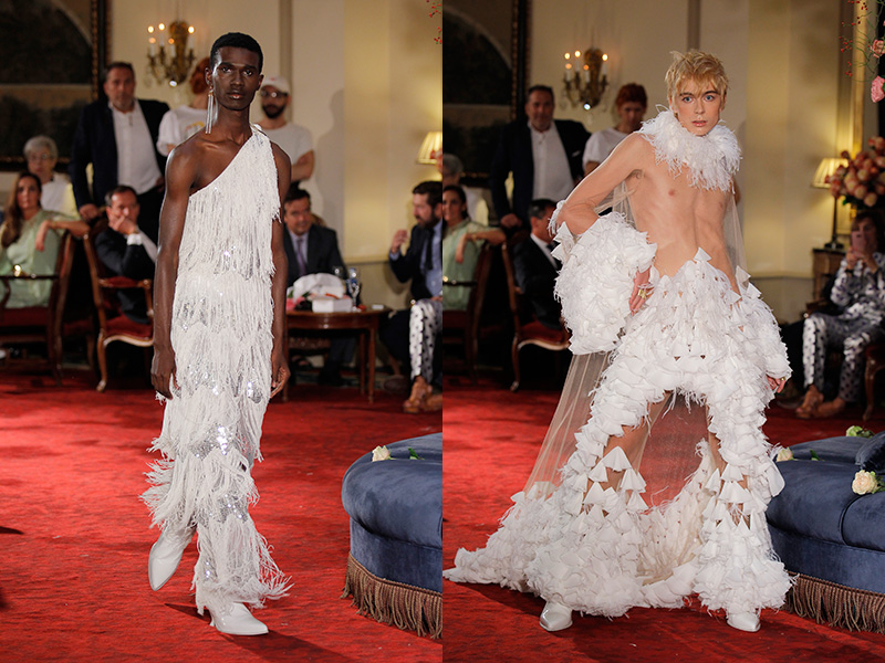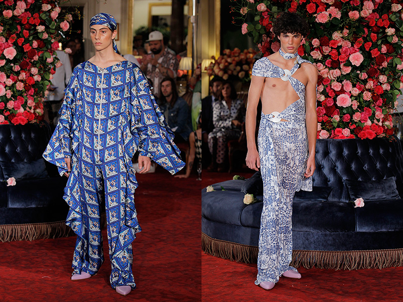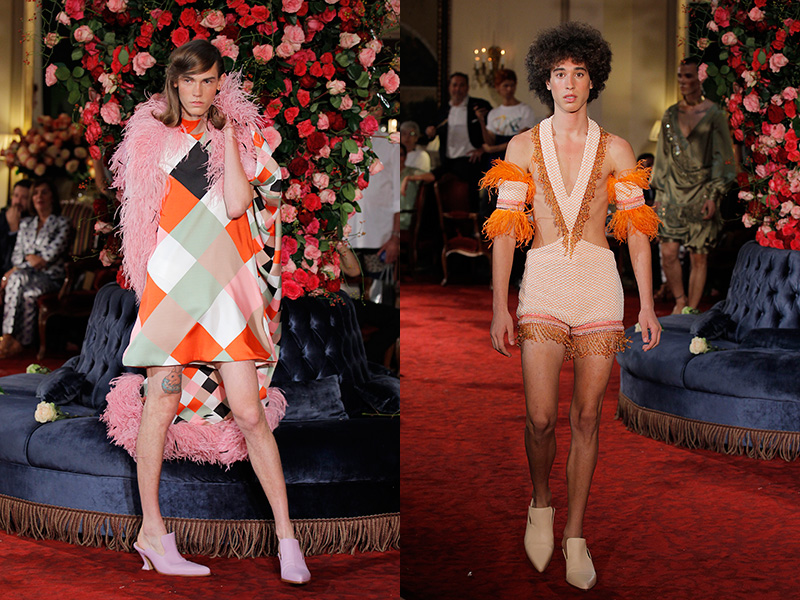 Palomo Spain presenta su colección Primavera Verano 2018, la quinta del diseñador maleno Alejandro Gómez Palomo, a la cabeza de la firma española. El escenario elegido ha sido el Hotel Wellington, lugar de referencia en Madrid y marco ideal para comprender la idea que el equipo de Palomo ha intentado transmitir con esta, su última propuesta. Para comprender la temática detrás del desfile, hay que retroceder en el tiempo y analizar la trayectoria de la marca. Palomo, que ha cumplido 1 año de vida este pasado mes de Febrero, ha dado la vuelta al mundo y ha presentado en Moscú, Nueva York y París. En su estancia en estos lugares, Alejandro se ha cruzado con todo tipo de individuos. Son nuevos amigos que aparecen durante el viaje, es también el staff de los hoteles en los que ha dormido, sus huéspedes y visitantes varios… Un constante entrar y salir de personajes que alimentan su imaginario, su estética y convierten el desfile en un vistoso guiño a todos esas personas que se han cruzado en su camino. Igualmente habiendo dado contexto a su colección, Alejandro vuelve a retroceder en el tiempo y reflexiona sobre viajeros y estéticas icónicas que se ha traído consigo del mundo de la música, el cine o el teatro musical.