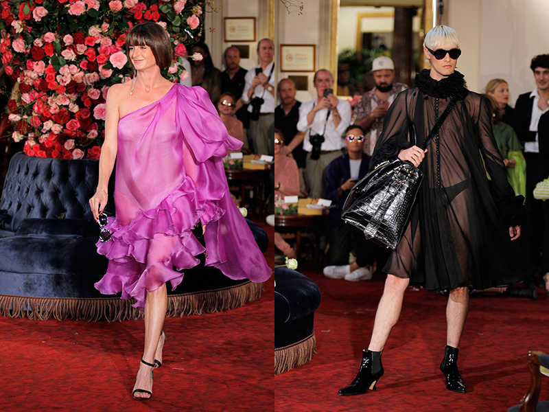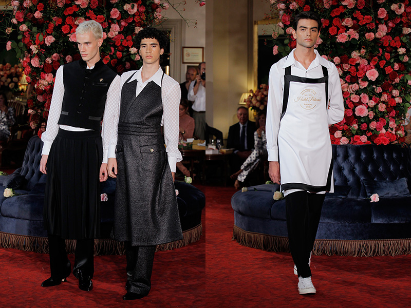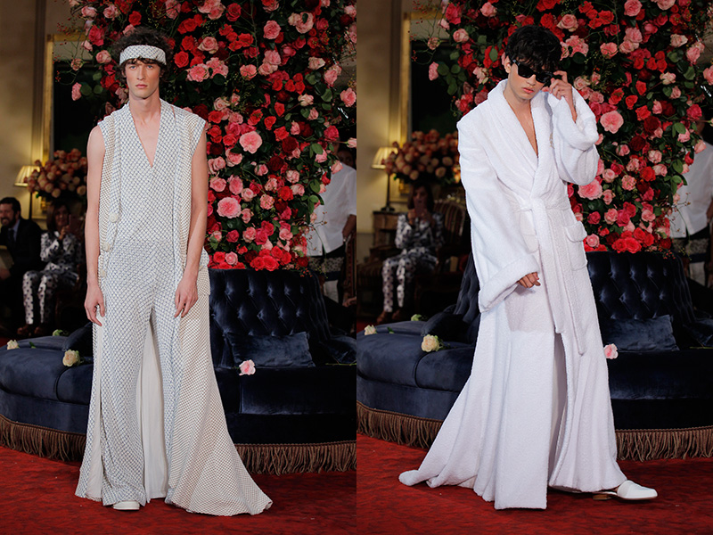Para narrar la historia de todos estos personajes, el diseñador ha concebido un desfile que se desarrolla durante toda la jornada de trabajo del hotel: Desde el despertar de los primeros huéspedes a bien entrada la noche, la fiesta.