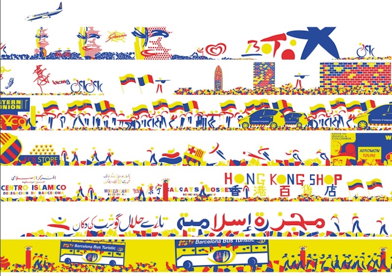 Otra obra relacionada con Barcelona es BCN Eye Trip (2008), que trata de la homogeneización a través del branding. La campaña gráfica promocional de los Juegos Olímpicos de Barcelona de 1992 se basó en el uso de pictogramas con amplios brochazos en tres colores: amarillo, rojo y azul. La intención era asociar la ciudad con una idea de espontaneidad, frescura, creatividad e identidad mediterránea, vinculada al legado pictórico de vanguardia de artistas como Joan Miró y Pablo Picasso. La animación digital BCN Eye Trip muestra el logotipo del autobús turístico de la ciudad: un ojo que contiene una vista panorámica de la ciudad, donde todo figura reproducido con el mismo código tricolor, mostrando todos los elementos que contribuyeron a la expansión de ese diseño y de las formas públicas de expresión que más tarde adoptaron aquel lenguaje.