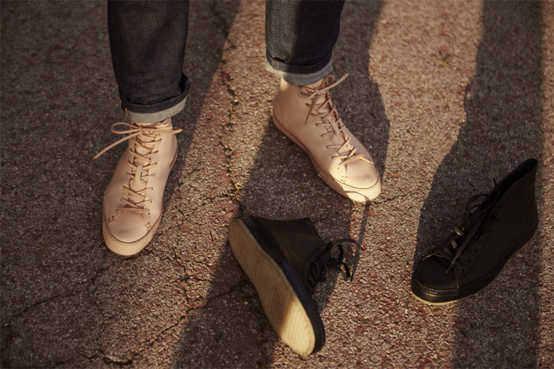 ¿Todos vuestros productos están realizados en cuero vegetal, o solo algunos? Utilizamos bastante el cuero vegetal. Cuando creamos un modelo nuevo, siempre intentamos hacer uno con este tipo de cuero si es posible. Es como nuestra firma. También utilizamos esta piel para el interior de las zapatillas. Aunque diseñemos un modelo con tejido por fuera, el forro y las plantillas están hechas con piel vegetal de vaca.