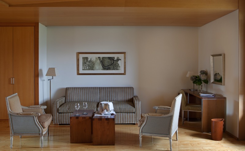 La Uno Paper Bin diseñada por Pablo Pardo añade sofisticación a este rincón del Parador de Santo Estevo