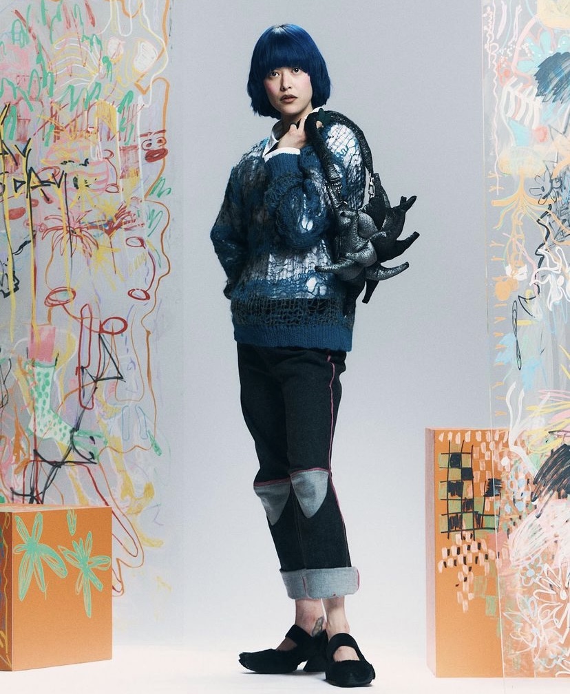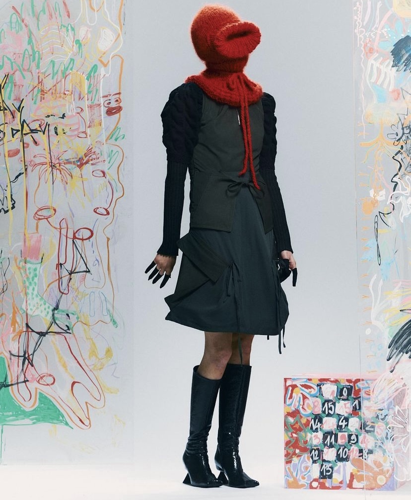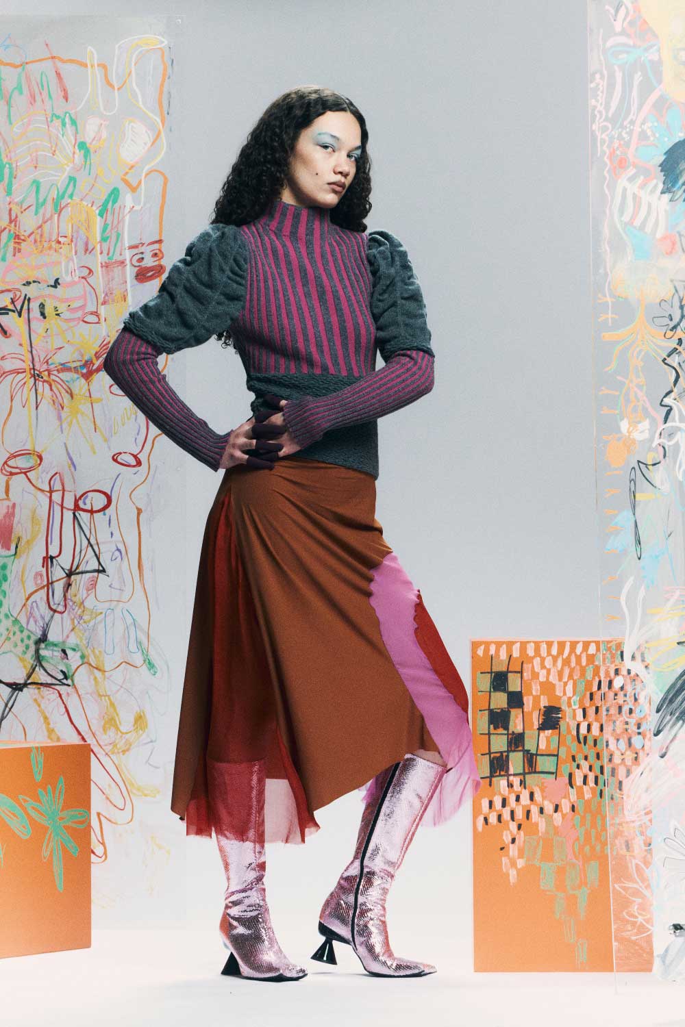 Me gusta trabajar en el producto, aislarlo totalmente del contexto de la colección y crear objetos que funcionan por sí solos. En el caso de los jerséis de punto, esta referencia lleva con nosotros mucho tiempo, inspirada en el clásico de Vivienne Westwood, pero nunca encontrábamos los hilos idóneos. Esta vez conseguimos trabajar con desechos de lanas de buenísima calidad que la fábrica tenía y terminó funcionando muy bien. Nos pasa mucho, a veces tenemos ideas o conceptos, pero esperamos al momento adecuado, o encontrar el material o proveedor que sabemos que mejor plasmará esa imagen.
