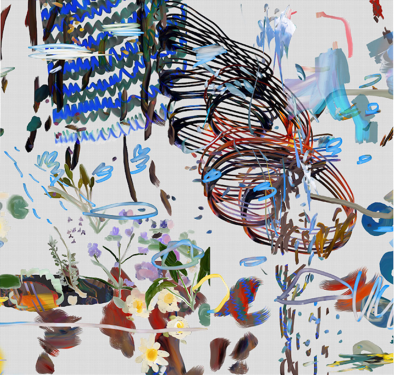 Los cuadros de Petra Cortright se realizan a partir de un archivo inicial o “archivo madre”, como lo llama la artista. Este archivo es tratado meticulosamente mediante cientos de capas de Photoshop que incorporan imágenes encontradas online: plantas, cocinas, escenas de playa de su soleada California mezcladas con dibujos digitales: rosas, elementos figurativos y garabatos abstractos. Esas capas se manipulan para producir una disposición que se transfiere a un sustrato (metal, tela o papel) a través de procesos de impresión industrial. Estos tratamientos de colores y formas la han llevado a ser considerada en la influyente página web de venta online Artsy como “la Monet del Siglo XXI”.