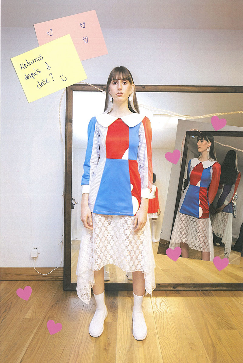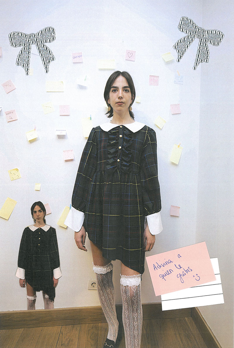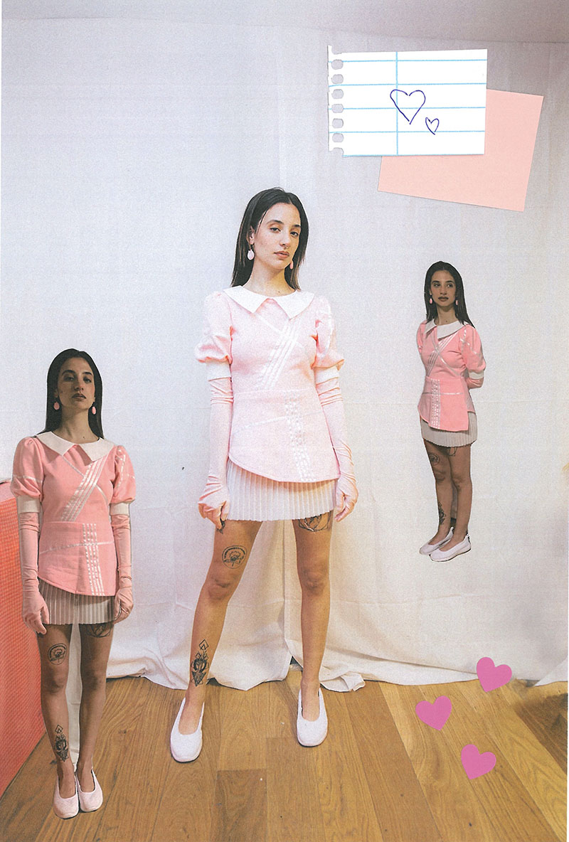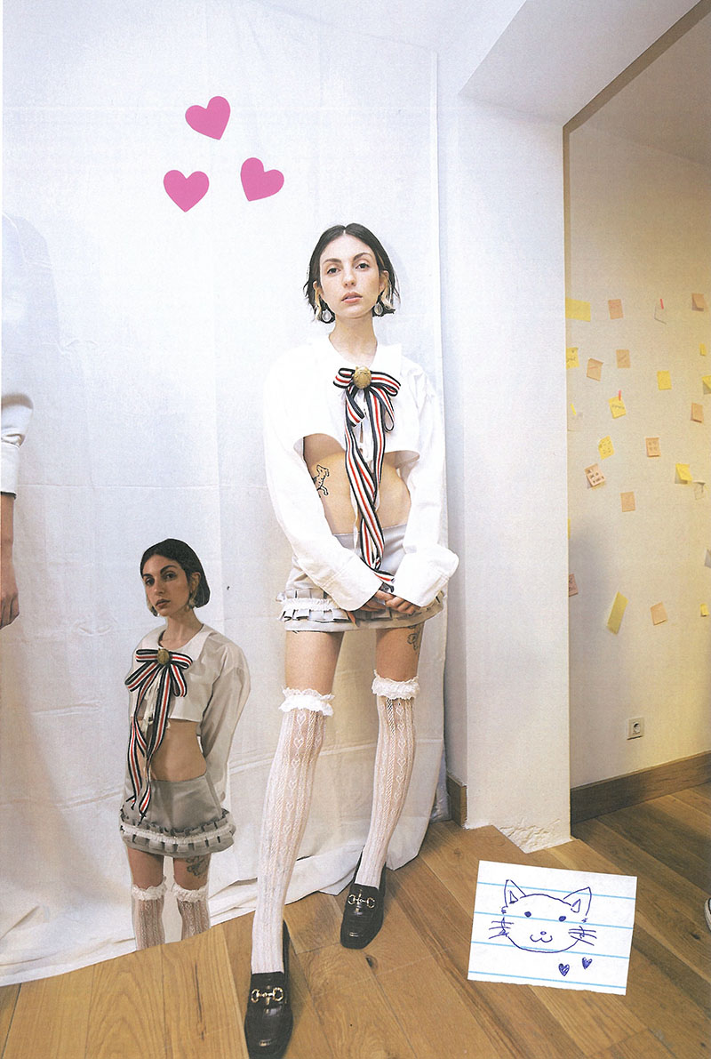 ¿Qué otras referencias importantes encontramos en los nuevos diseños de “Picopico International School”? Otra principal referencia en esta colección es el dúo musical t.A.T.u. Fueron tremendamente populares a principios de los 2000 y usaban uniformes escolares en sus actuaciones. Su historia es bastante truculenta, ya que se explotaba su imagen adolescente y el supuesto romance entre las integrantes, que se besaban en todas las promociones. Aunque todo fue una obra de marketing, se convirtieron en iconos del colectivo LGTBQ+ y en todo un referente para mi generación.