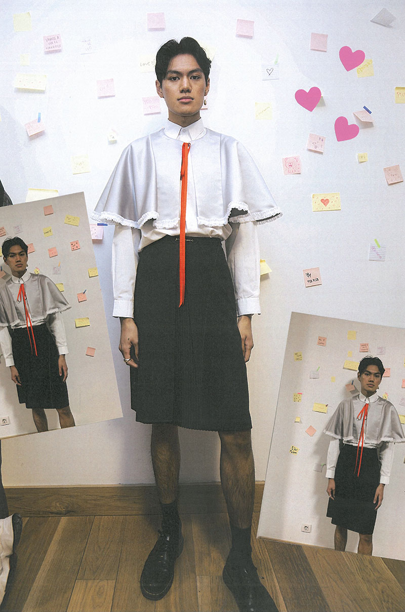 Teniendo en cuenta que la inspiración principal de la colección son los uniformes escolares quiero preguntarte, ¿de dónde viene esta obsesión? ¿Tuviste uniforme escolar en tu colegio? Desde muy pequeño me han encantado los uniformes, aunque tengo que confesar que mis favoritos no se usan en España… Me encantaban los uniformes de marinero que se usan en Japón, o los de colegios privados ingleses. Solo llevé uniforme hasta segundo de primaria, pero creo que no lo eché de menos.