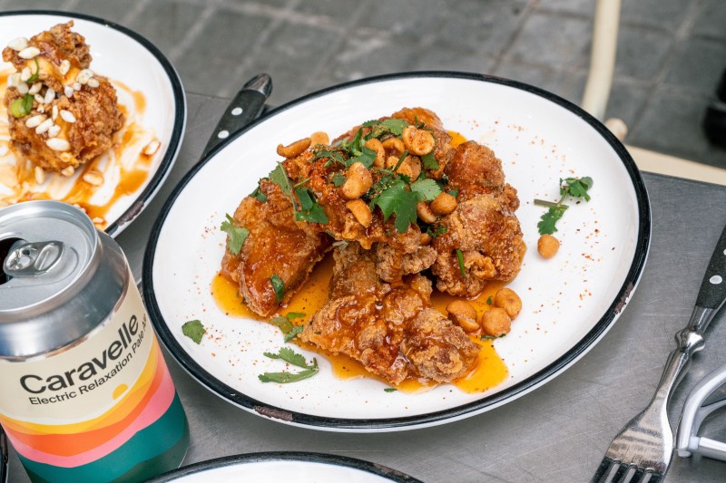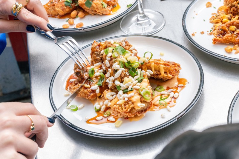 Entre las opciones, hay seis recetas que se preparan con un rebozado crujiente inspirado en la técnica coreana de doble fritura que cubre el pollo ecológico del Empordà. En el proceso de elaboración se sazona cada pieza con especias e ingredientes cuidadosamente seleccionados. Y, en el acabado se añade una salsa artesanal.