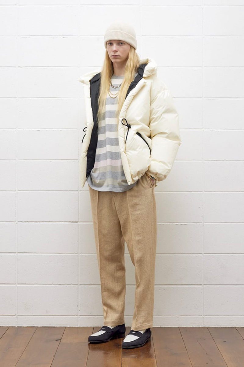 Como es de costumbre en el lenguaje de diseño local, la apuesta de esta colección de básicos de moda urbana japonesa se enfoca en siluetas extremadamente relajadas y cortes muy bien ejecutados, aportando una ligereza muy característica. La colección viene encabezada por la propuesta de prendas de outerwear atemporales: chaquetas resistentes al agua, un abrigo acolchado de inspiración militar M-65 y chaquetas de nylon.