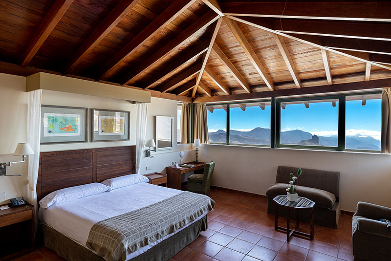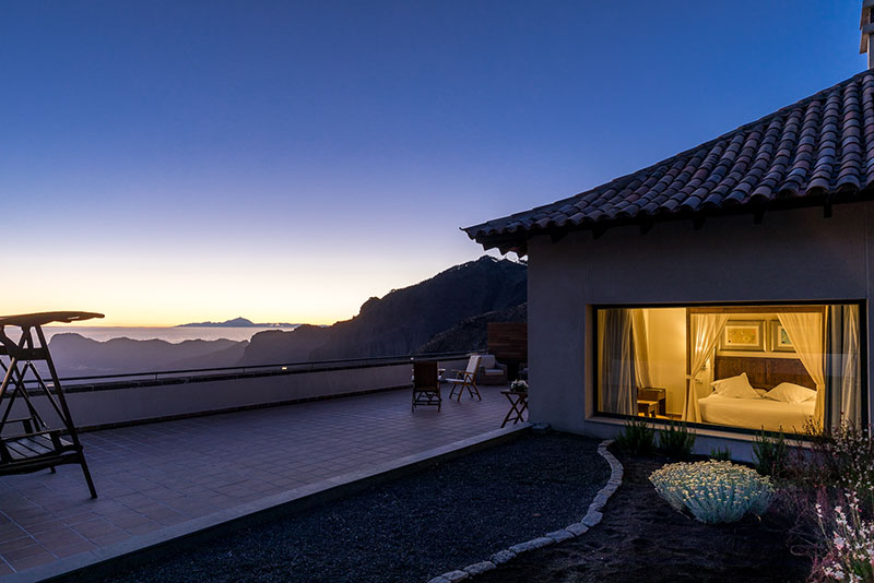El Parador de Cruz de Tejeda (imágenes superiores) ofrece la posibilidad de disfrutar de un baño al anochecer por encima de las nubes, a 1560 metros de altitud.