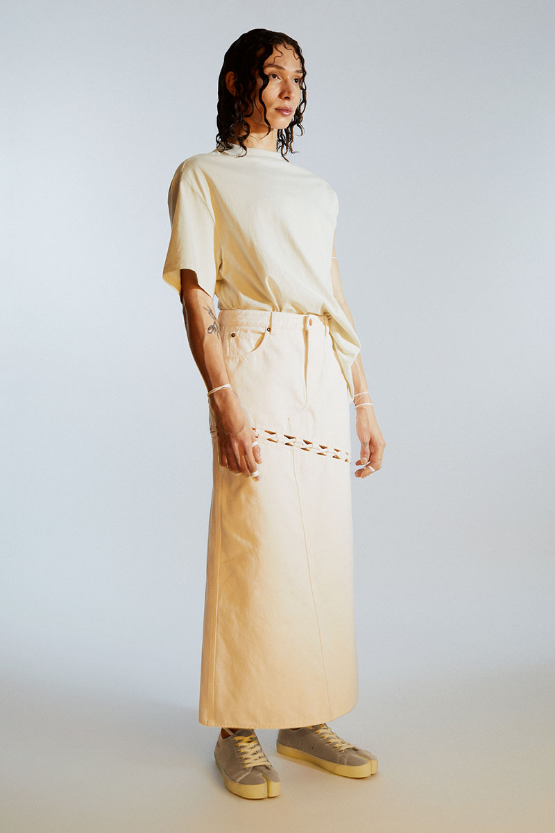 “El cáñamo como textil puede hacerte pensar en verde y en prendas que están disponibles en las tiendas naturistas. Nos gusta esa asociación y decidimos maximizarla en algunas piezas independientes. La mezcla de algodón y cáñamo tiene una estructura rugosa y dejamos que hable por sí misma, con siluetas escultóricas combinadas con cordones que permiten la versatilidad “. Alice Shulman, diseñadora responsable de ropa de mujer en Weekday.