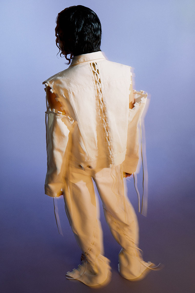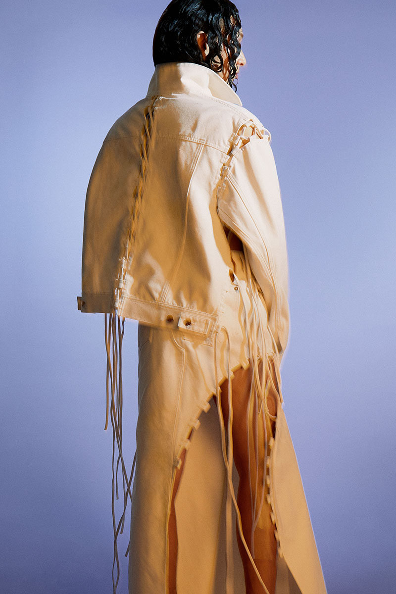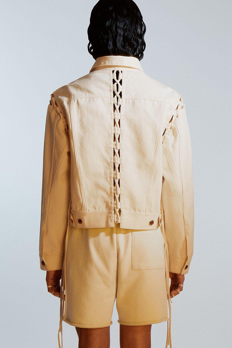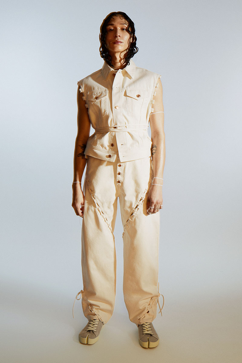 Para conseguir su objetivo, han creado una serie de siluetas exageradas con formas escultóricas llenas de detalles como el encaje o las cuerdas entrelazadas, como la chaqueta Mabel que viene con mangas desmontables o los jeans Plant Based y la falda Woody, también de carácter multifuncional. Para poder implantar los detalles de color en los tejidos solo se ha utilizado tintes fabricados a base de plantas.