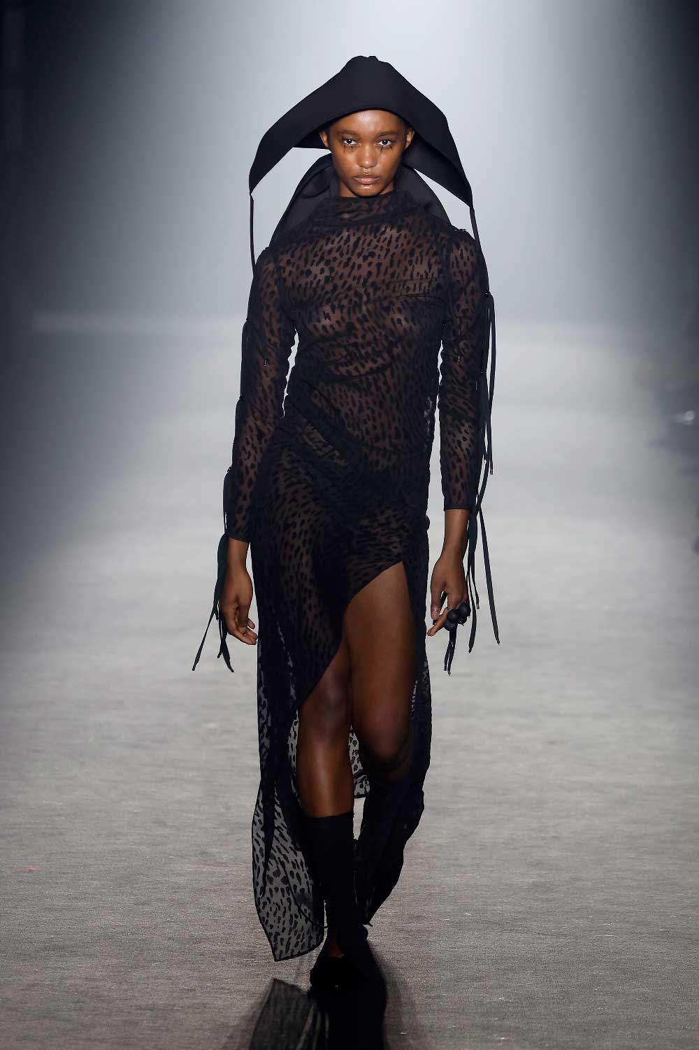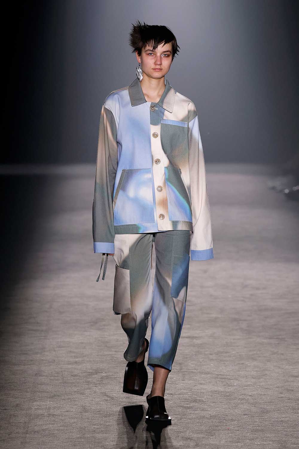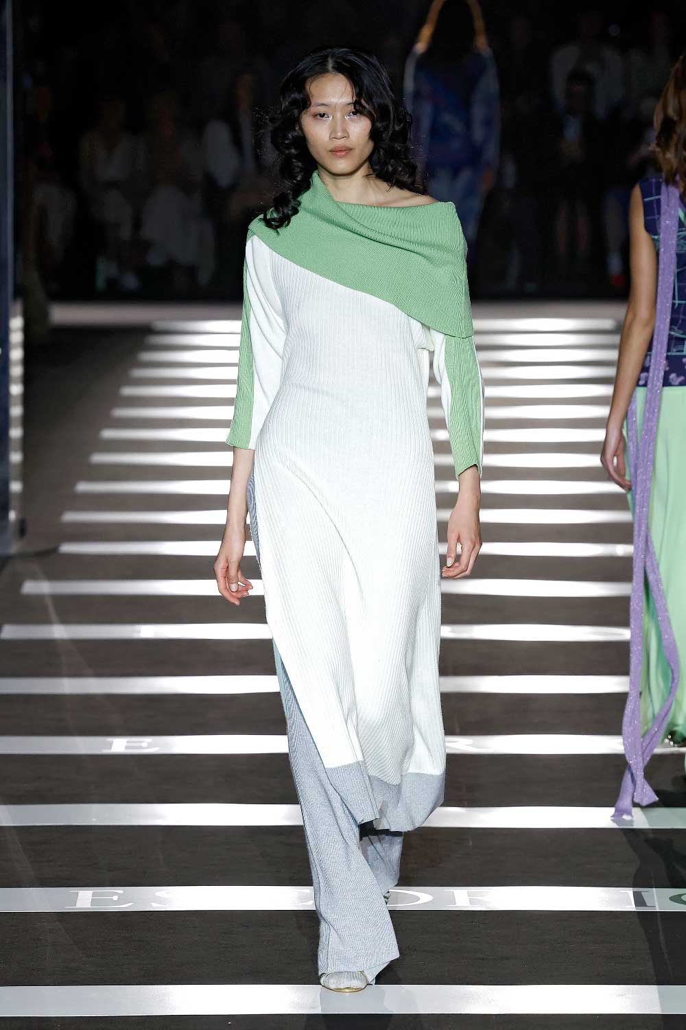 Preocupado por la situación medioambiental, Eñaut optó por transmitir, a partir del negro, un mensaje positivo y festivo en su despedida momentánea, acompañando el desfile con música en vivo. Este diseñador nacido en Guipúzcoa y afincado en Barcelona se graduó en Diseño de Moda en el IED en 2017. Tras incursiones en el slow fashion y el fast fashion, decidió lanzarse en solitario con su marca EÑAUT en 2018.