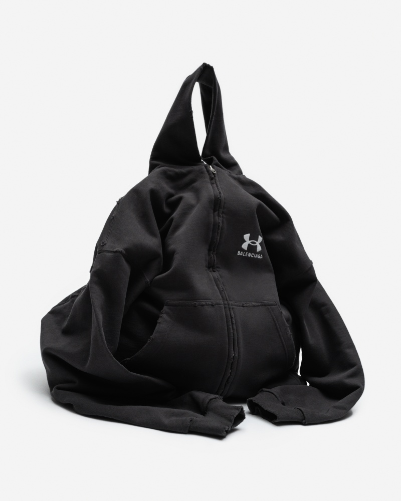 Otro de los pilares del universo Demna en Balenciaga es el sportswear. Sudaderas, chándal, ropa técnica y demás esenciales de esta índole también han sido adoptados por él y reinventados como siluetas de talante subversivo. El primer gran colaborador en este sentido fue adidas Originals hace un par de años. Y ahora, su próxima colabo con Under Armour profundiza en esta vertiente, mostrando lo mejor de su repertorio de habilidades y visiones.