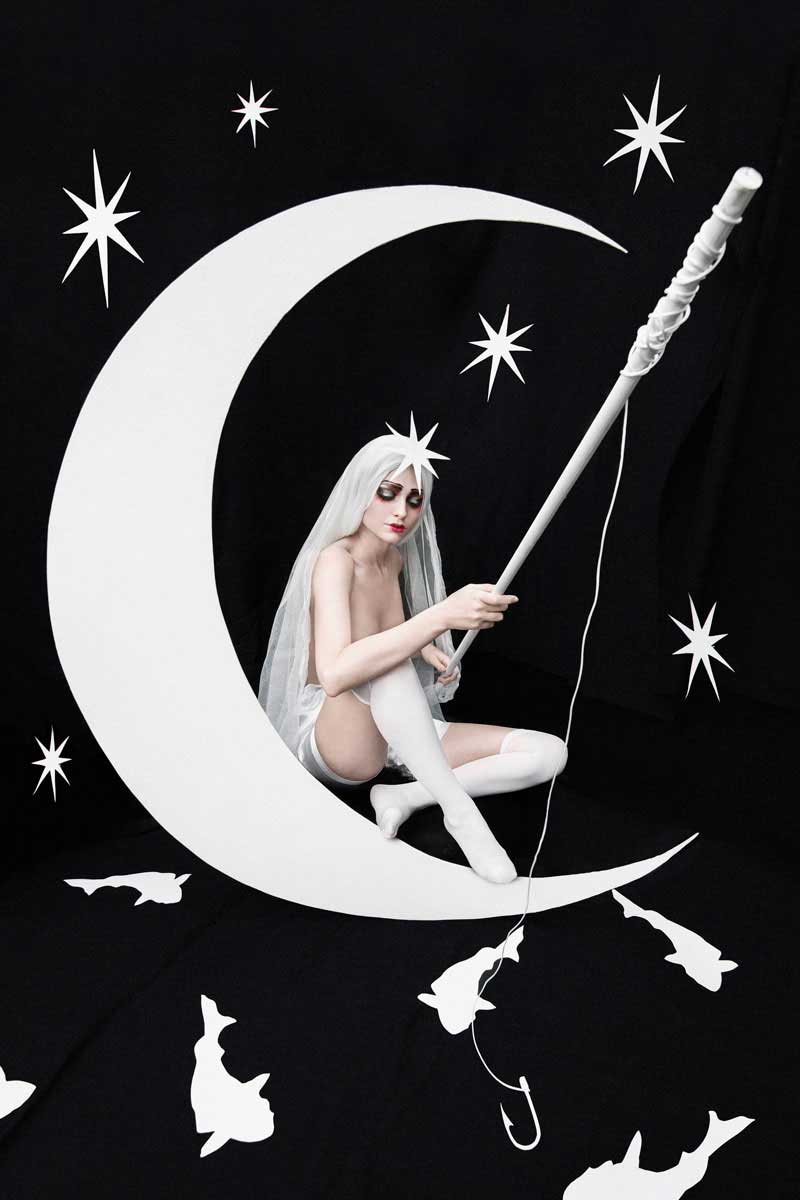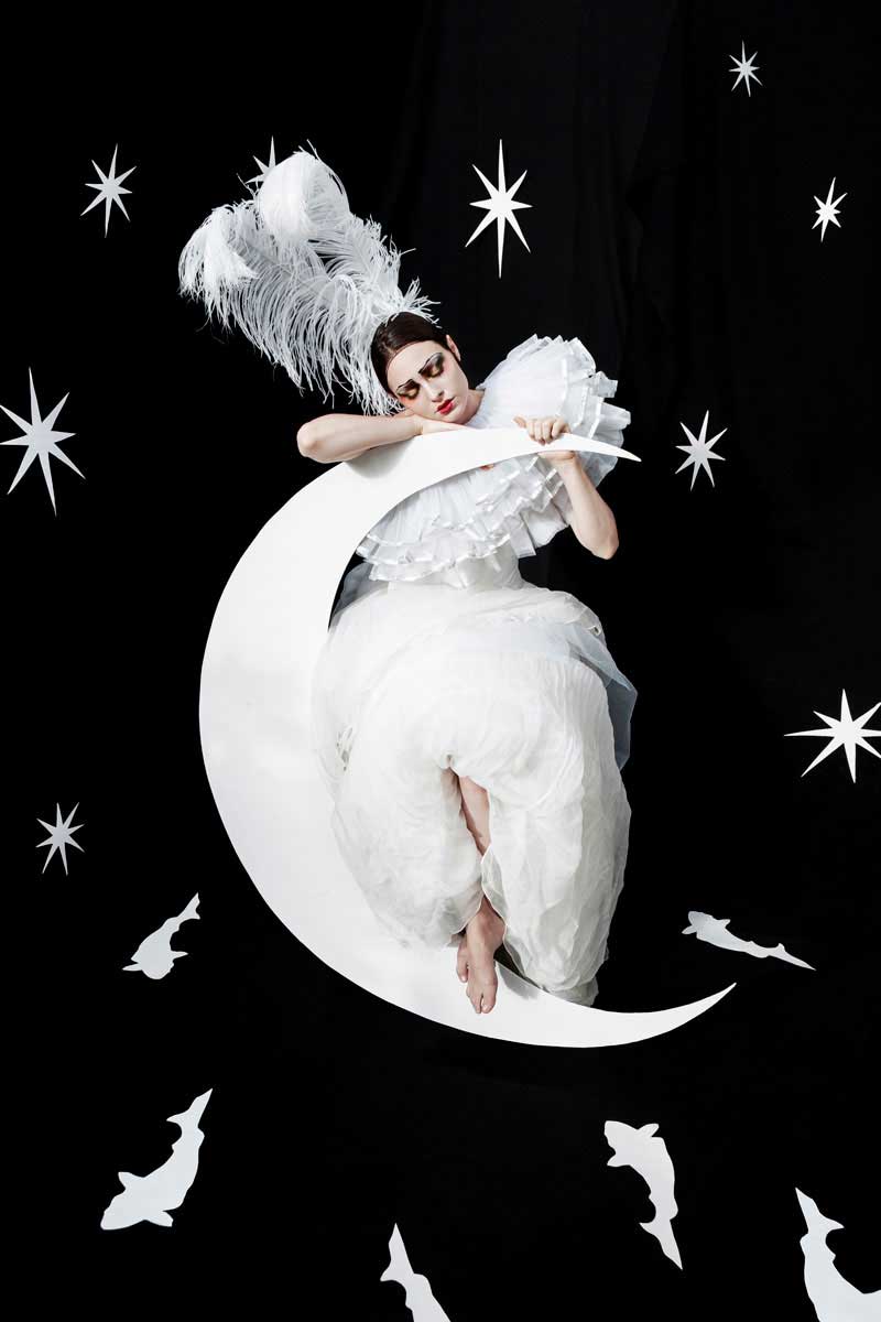 ¿Cuál es el concepto de la historia que nos habéis enviado y cómo habéis resuelto su realización? Cuando Joaquín y yo nos reencontramos, a los dos minutos después de habernos dado un abrazo empiezan a bullir veinte mil ideas que ambos llevamos guardando dentro durante meses hasta ese momento. Normalmente nos sentamos con una taza de café o té y empezamos a divagar durante muchísimo rato hablando y hablando de lo la historia que podríamos contar. Para mí en un proceso sin igual, nunca he conocido a nadie con quien he trabajado tan bien y con el cual me entiendo sin necesidad de palabras. Para mí es mi alma gemela creativa y, a pesar de que nos vemos poco, los momentos que tenemos juntos son inigualables. Este editorial surgió a partir de la idea de intentar crear pequeñas historias contadas en dos o tres simples sets ya que una vez más nos habíamos quedado sin tiempo. Yo llevaba tiempo queriendo hacer una luna gigante y en cuanto se lo propuse a Joaquin todo empezó a caer en su sitio.
