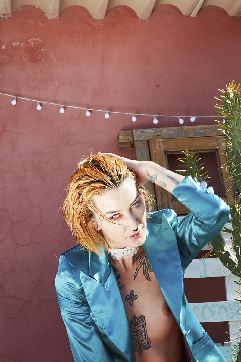 ¿Cuál es el concepto de este shooting y cómo lo habéis conseguido plasmar? Dark side of the sun, se refiere a la cara oculta del sol, a las personas que siempre están detrás para que el resto brille. Es una editorial de aire retro, post-ravero, sin retoques, sin trucos, con luz natural y reflejada. Es la historia de 6 modelos o talentos alternativos que buscan su lugar más allá de las convenciones estéticas o comerciales.