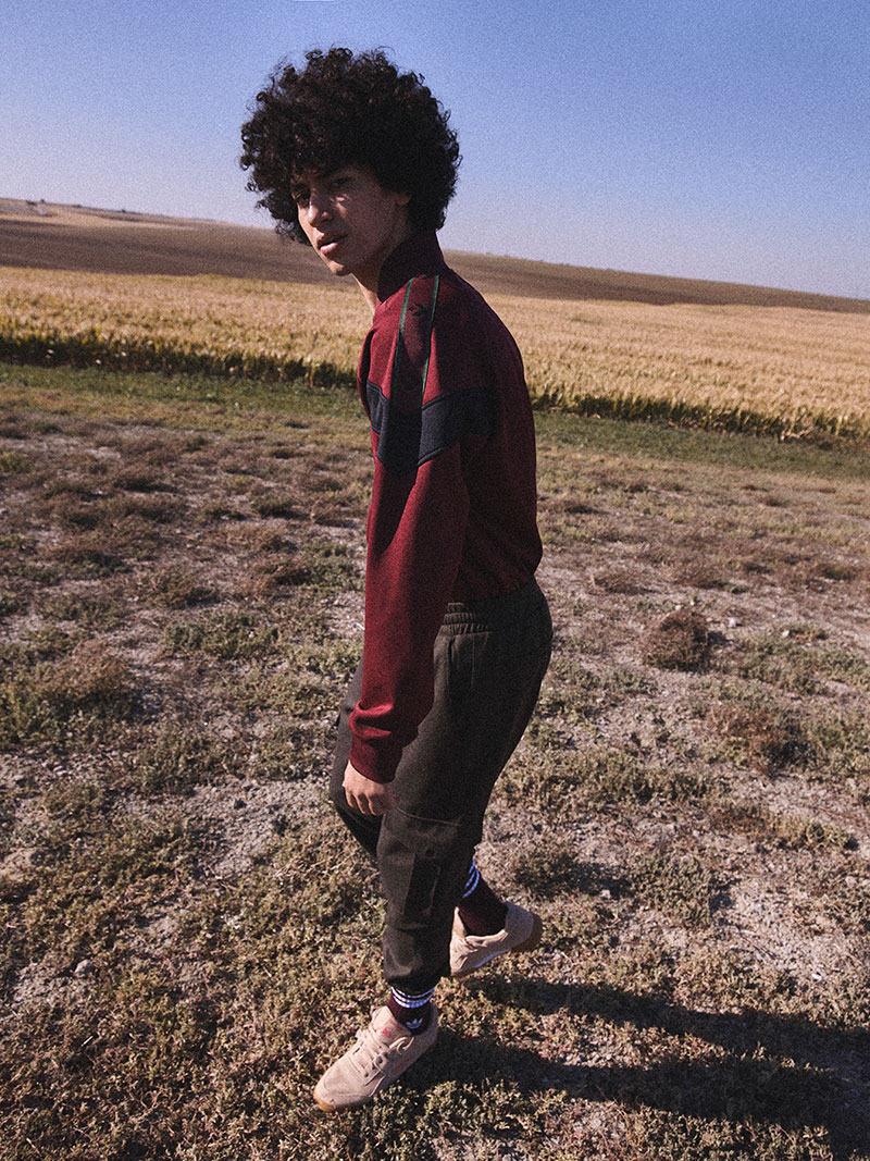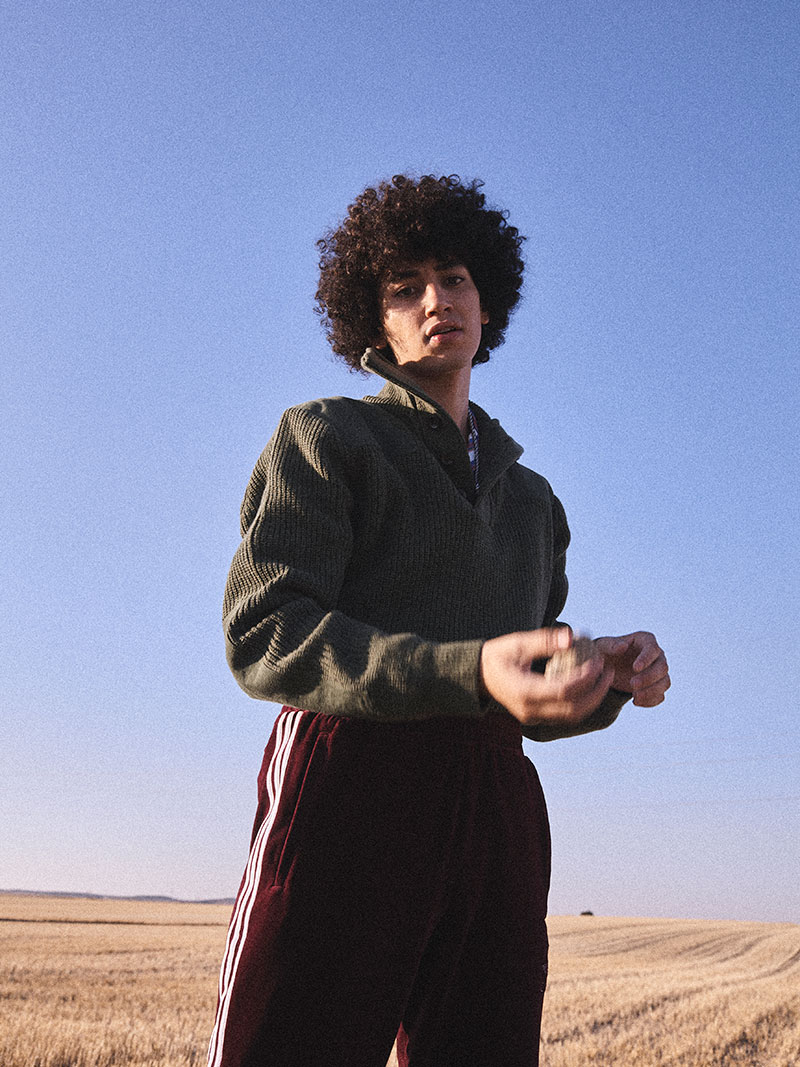 Sofian el Ben lleva suéter Loreak, camisa Walkers Appeal y pantalón adidas Originals