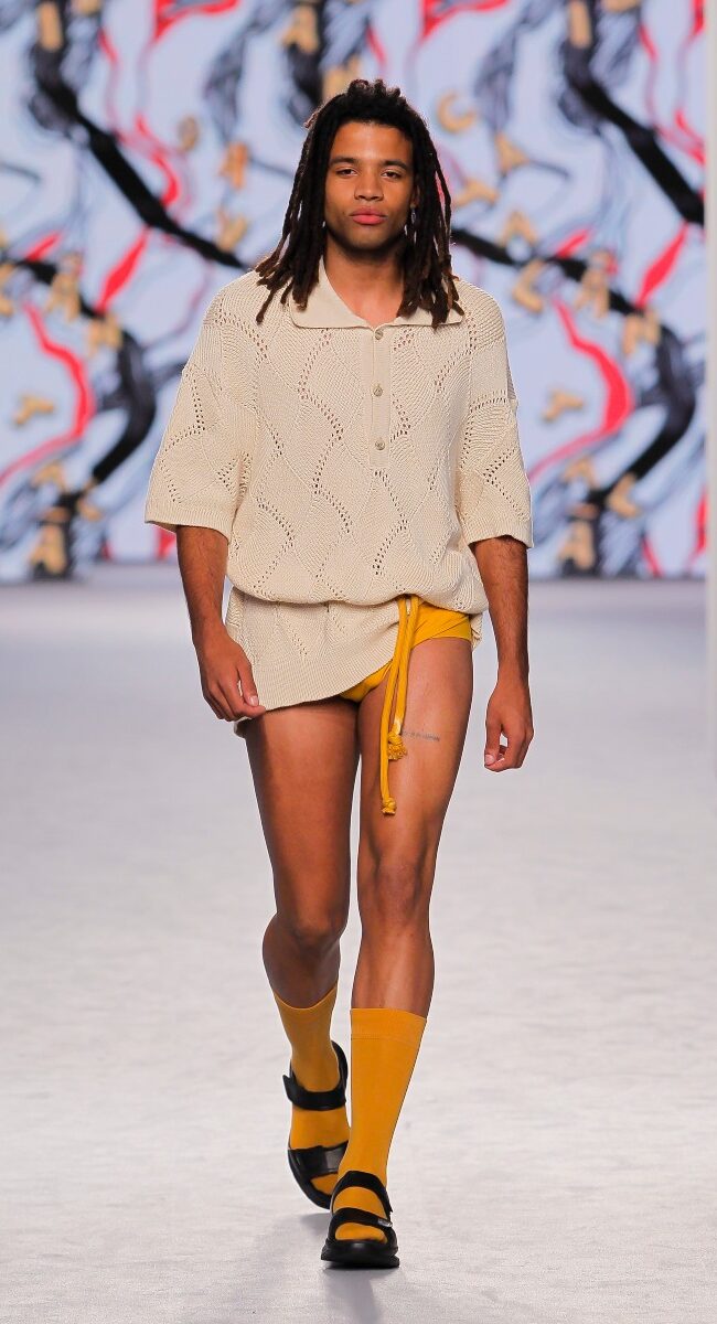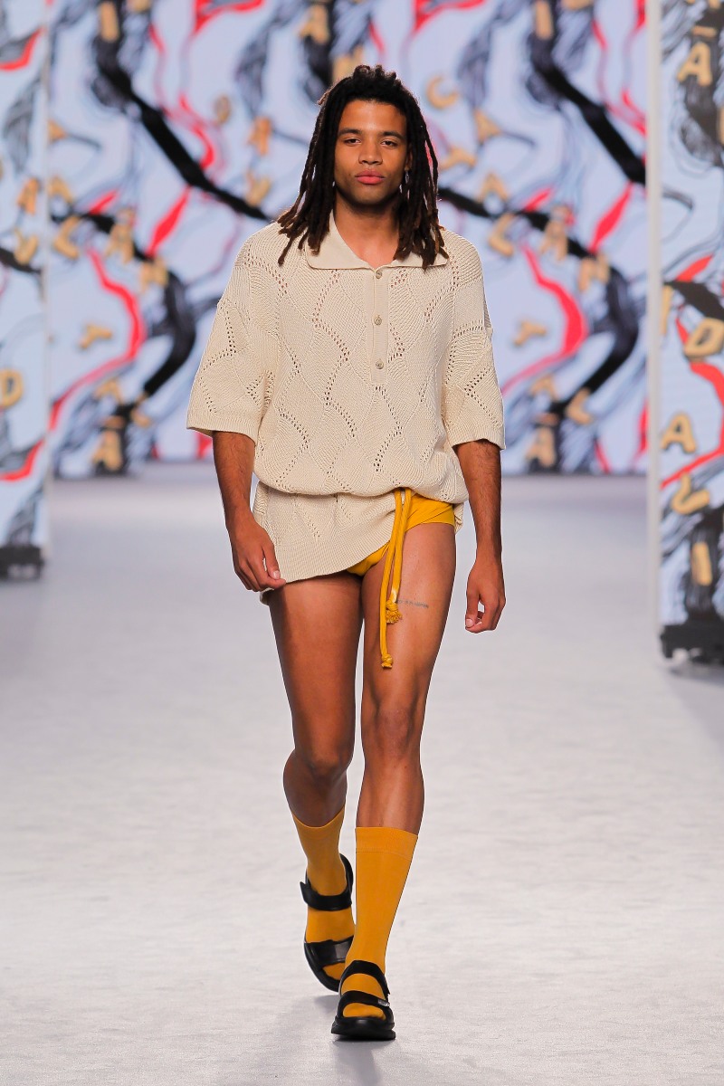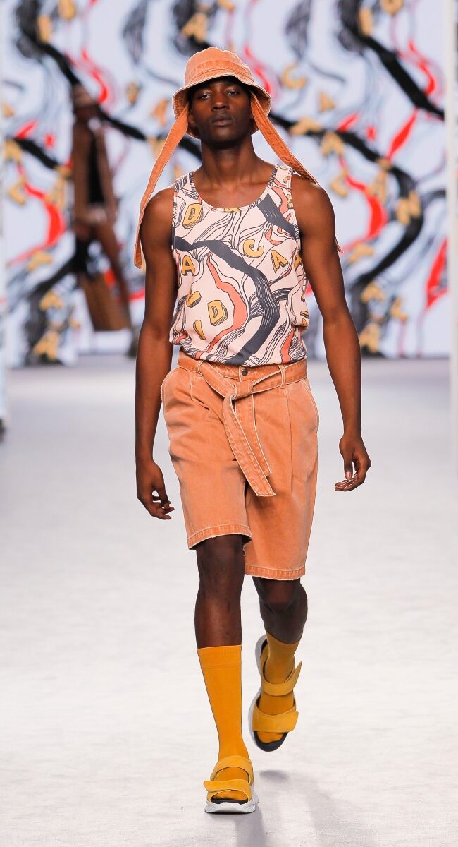 MADRE SS22 fue la colección presentada una edición más de David Catalán en Portugal. Lleva muchos años afincado en Oporto, aunque nunca olvida sus orígenes y en ocasiones regresa a España a mostrar sus nuevas ideas. En la línea presentada, todo orientada a la moda masculina, mostró cómo ve al hombre del 2022 basada en estampados vichy y colores que recuerdan a un atardecer con matices de incertidumbre. El accesorio más repetido fue el bucket hat en diferentes tonalidades.