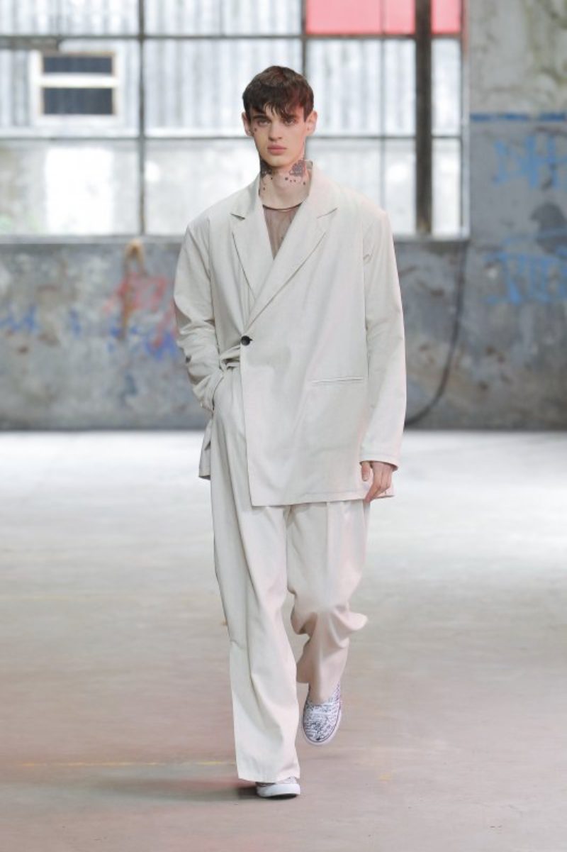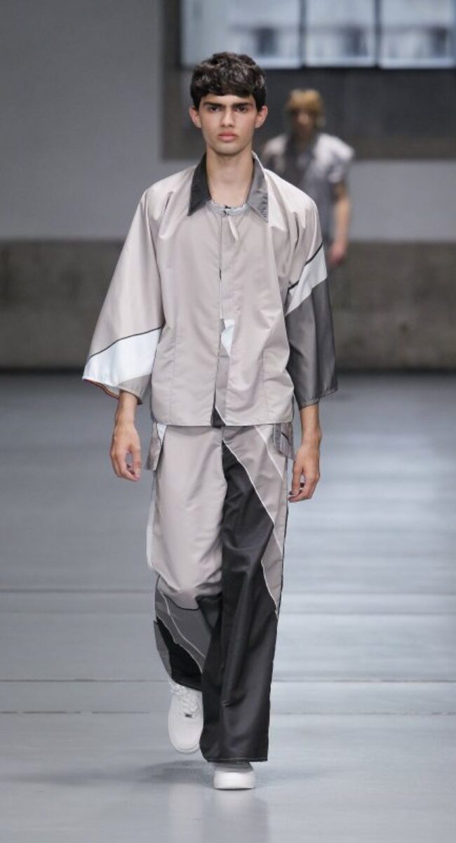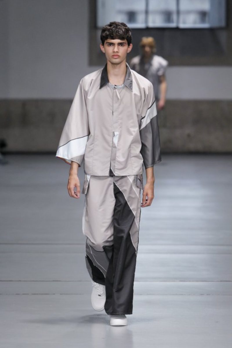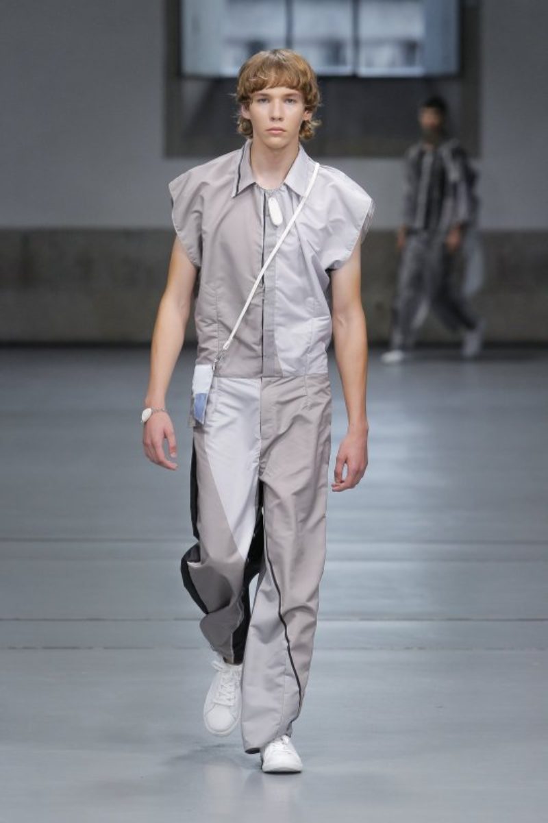 Si algunos diseñadores han trasladado a sus nuevas propuestas mucha de la estética de ahora y tonos que representan el verano, Camille Moço ha viajado al futuro. Mediante la asimetría y las prendas sin límites bañadas en color plata, Camille Moço mostró una moda sin género, amplia y cómoda. No tenemos ninguna duda que te sorprenderá, como juega con los matices del gris, sin tener que utilizar más colores.