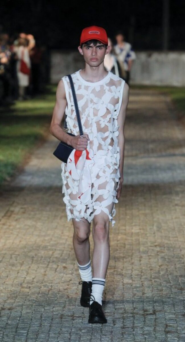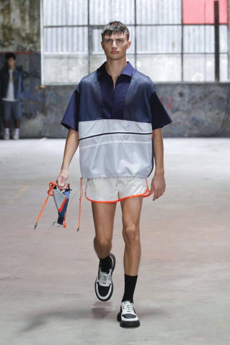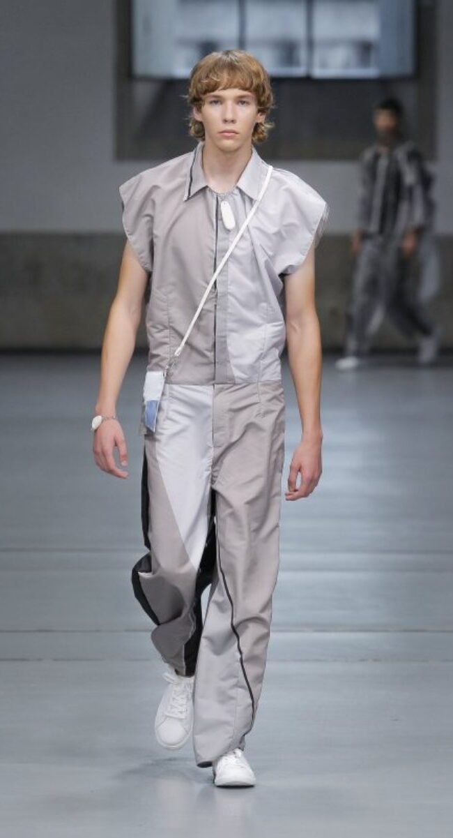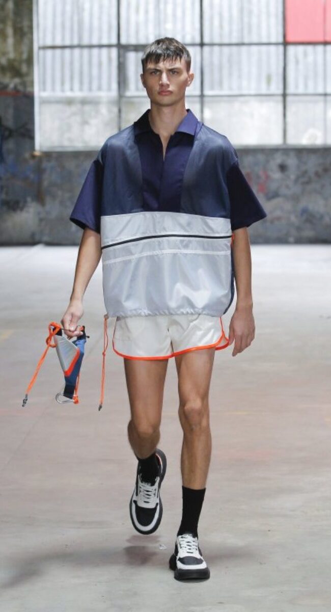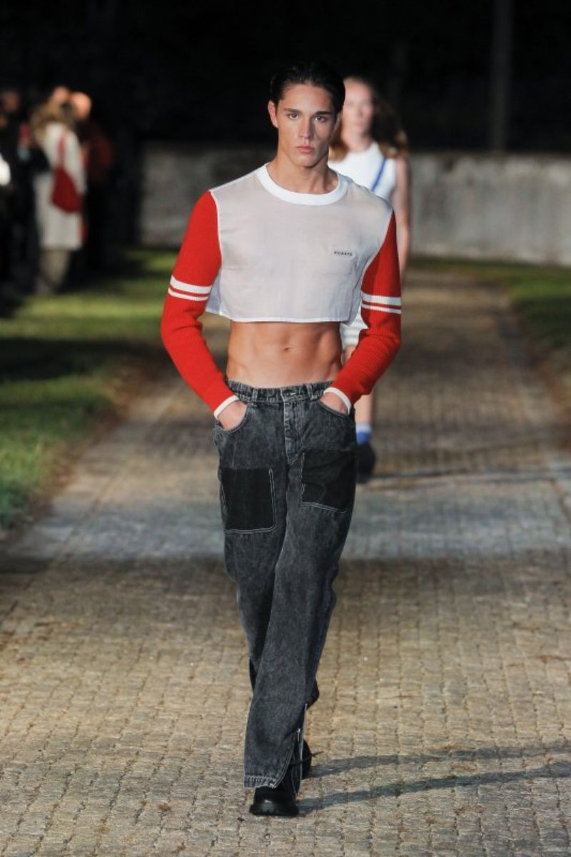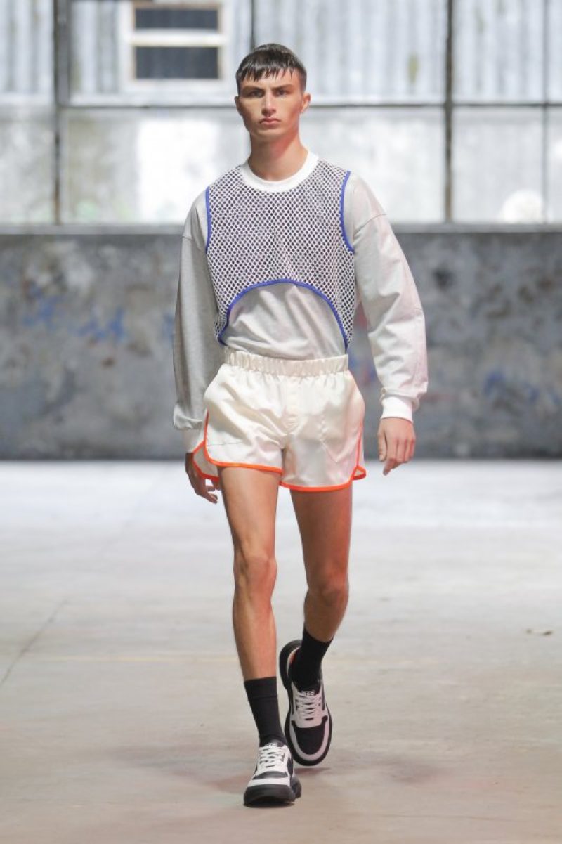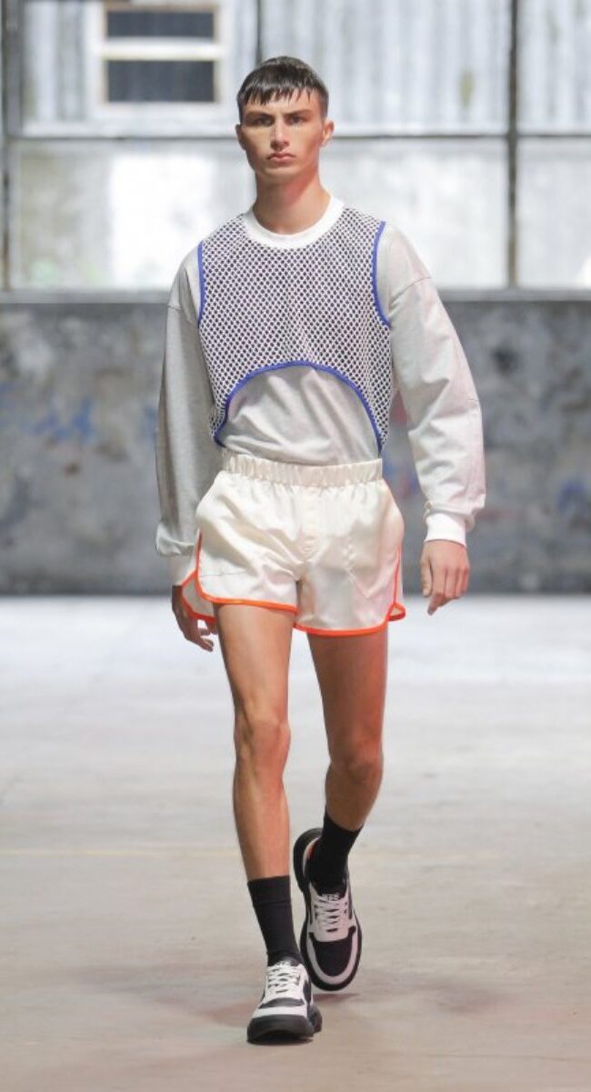 Está claro que la moda de Portugal quiere a un hombre con transparencias, pantalones amplios y cortos o con superposiciones en tejidos. Estelita Mendonça ha seguido la misma corriente que sus compañeros portugueses, pero él, arriesgó en la combinación de tonos y en exponer al máximo la estética deportiva y futurista que tanto vamos a ver en 2023.