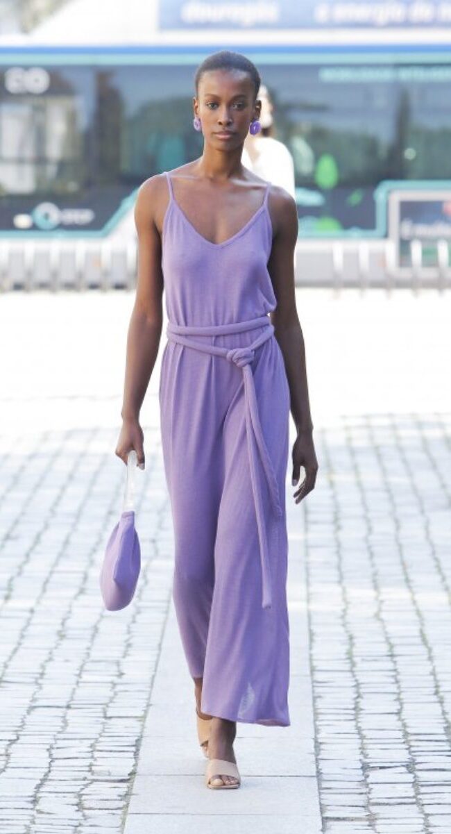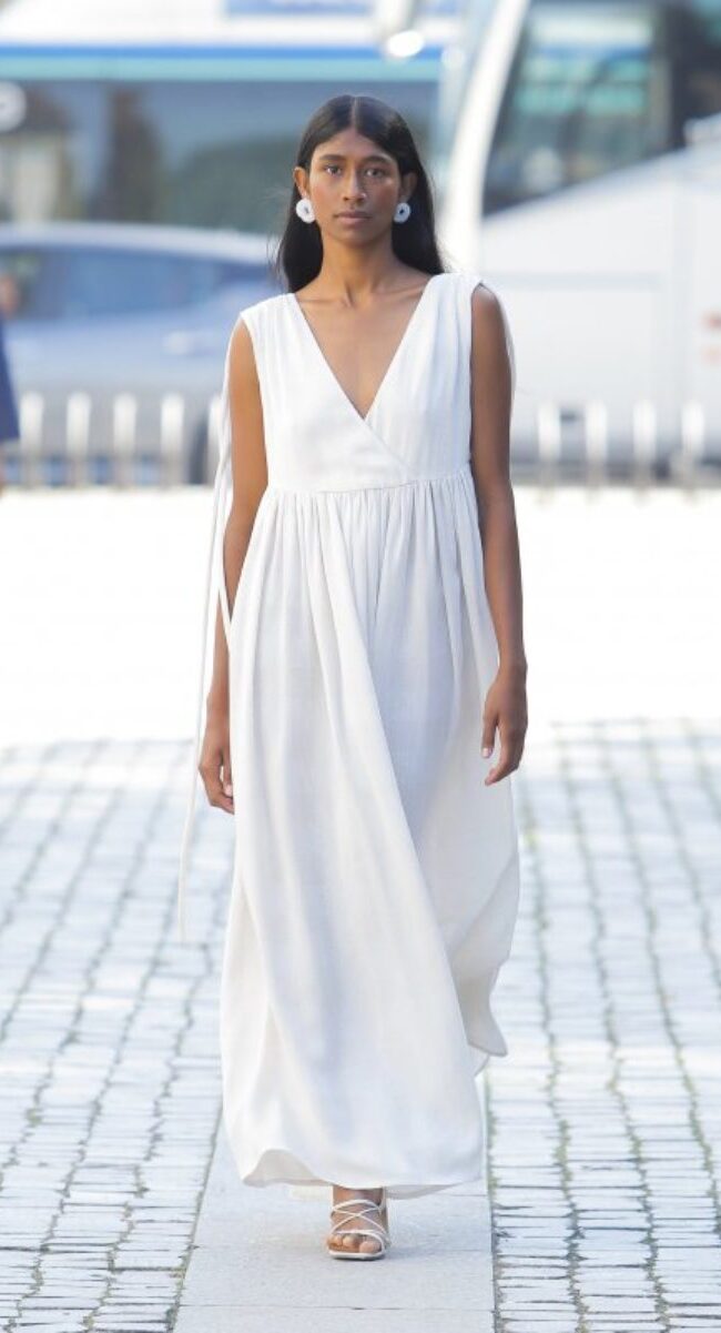 Fluidez, estética romántica, prendas de lino o diseños elegantes. Son cuatro adjetivos que mejor definen a la colección de Carolina Sobral. Presentó a una mujer que se olvidó de los tacones y prendas ajustadas. Ahora la mujer tienen en su armario, vestidos blancos ligeros, conjuntos monocolores, pantalones de talle alto o cortes en la cintura, para alargar la figura.