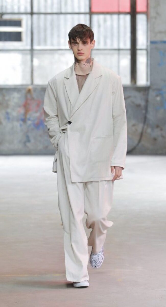 Como en la 080, un clásico en su pasarela es Custo Barcelona, en Oporto, es Hugo Costa. Trajes oversize, colores claros, transparencias o encaje. Son algunos de los elementos que incorporó el diseñador en sus piezas para SS23. El diseñador luso, tiene claro, que la moda para el próximo año, será cómoda, sin costuras o apretada al más puro estilo de los noventa. Presentó a un hombre y mujer que quieren sobrevivir a las temperaturas cálidas, sin perder el estilo.