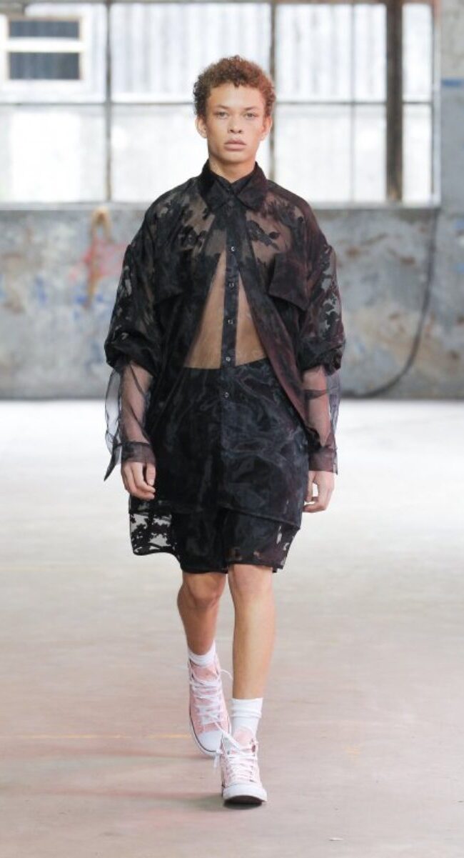 De nuevo, Víctor Huarte no falló a la cita. El riojano conquistó a todo el mundo con propuesta más innovadora. Él no tiene miedo a experimentar y probar, y en consecuencia, el diseñador presentó una de sus mejores colecciones. Siguiendo el hilo de las demás colecciones, la comodidad no se eliminó, pero se unió a crop tops o vestidos de encaje para hombres que eliminan el concepto de masculinidad clásica.