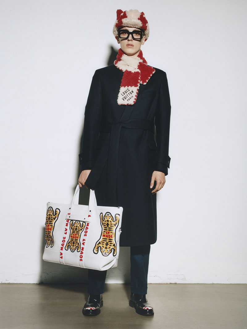 Una de las fusiones más interesantes la encontramos en los trajes clásicos de hombre, que para esta ocasión toman ciertas referencias de los kimonos, como el cinturón de lana azul marino es un guiño al obi, la chaqueta de sastrería con rayas Monogram y las camisas. Esto no es más que otra evidencia de la facilidad que tiene Louis Vuitton como firma a la hora de adentrarse en el unniverso de los viajes.